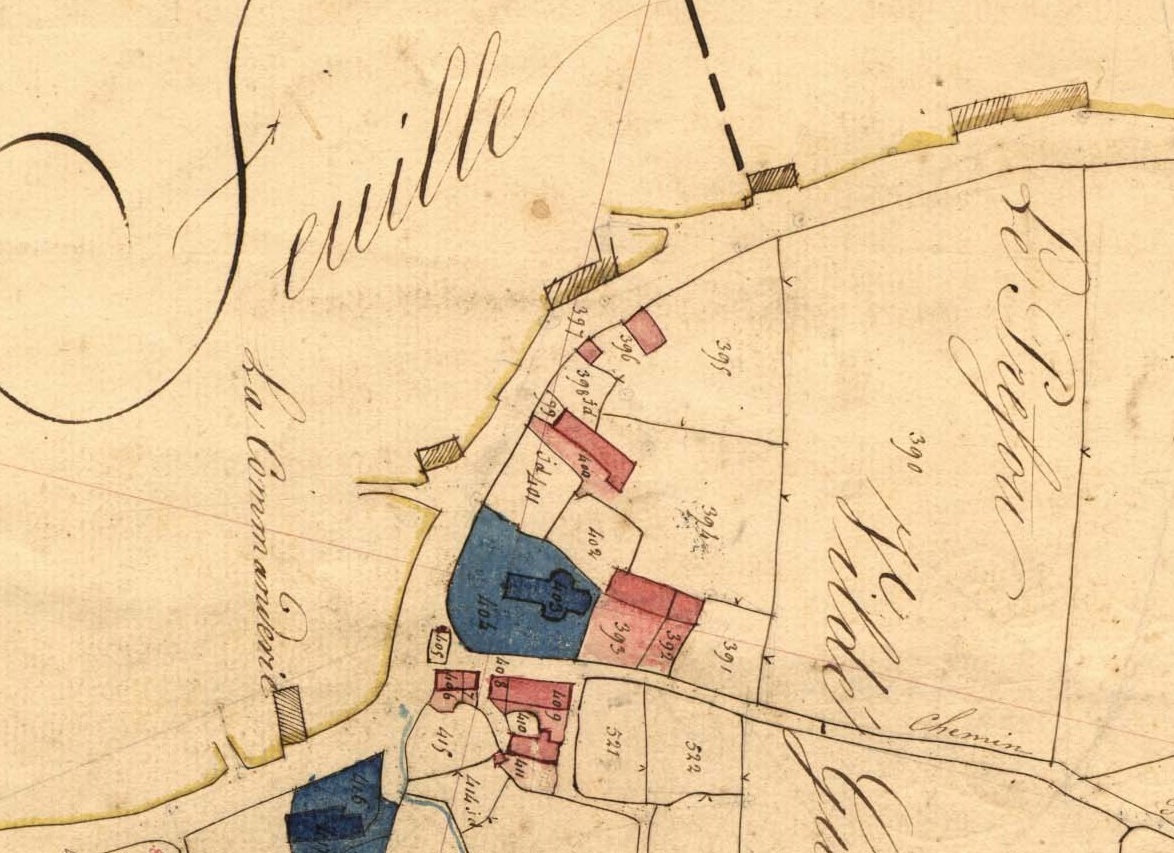 Maison 2D rue des Templiers. Extrait du cadastre ancien de Vildé-Guingalan, Section B dite de Coavou, deuxième feuille (1835).Immatriculation
