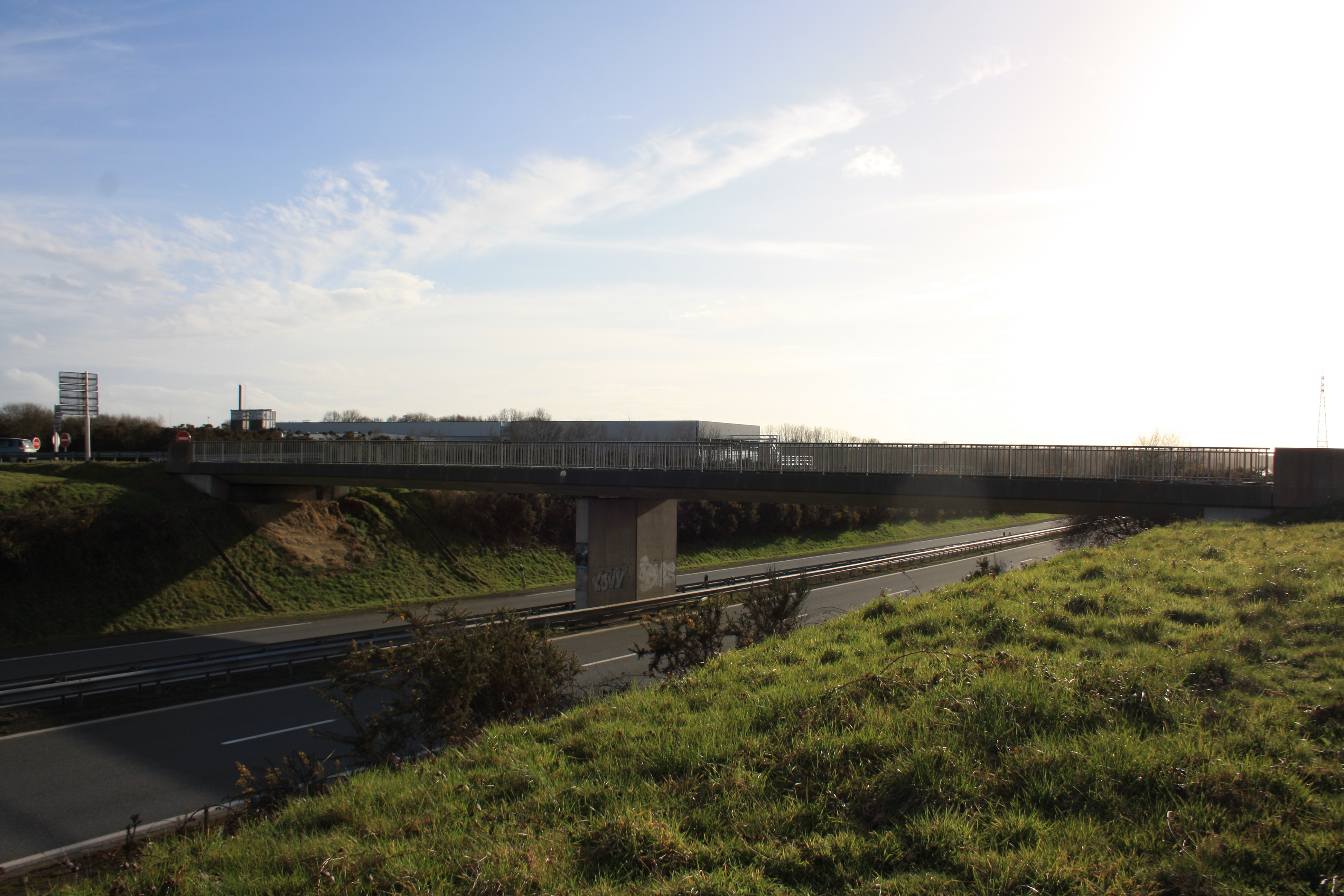 Vue de la nouvelle route nationale coupant en deux Vildé-GuingalanImmatriculation