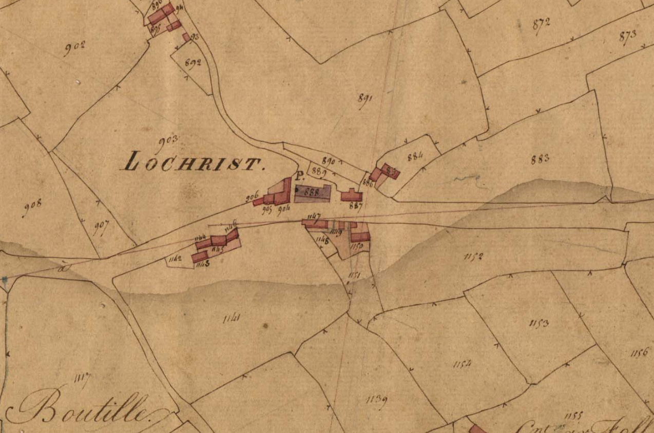 Extrait du cadastre ancien de la commune de Coatréven, Section B dite de Lochrist, deuxième feuille, 1834Immatriculation