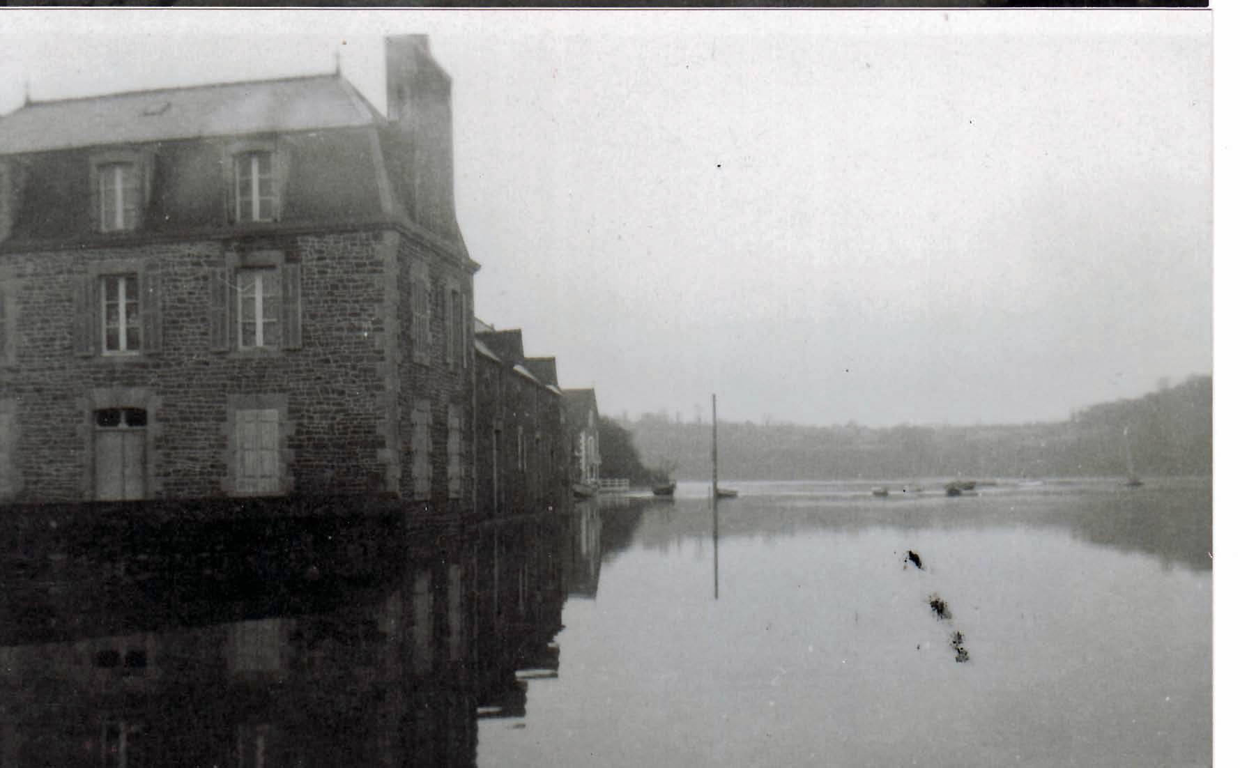 Photo prise vers 1950, les inondations à Mordreuc devant la maison de Jean-Marie Lorre construite en 1888 (A. privées Germaine Guillou)Immatriculation