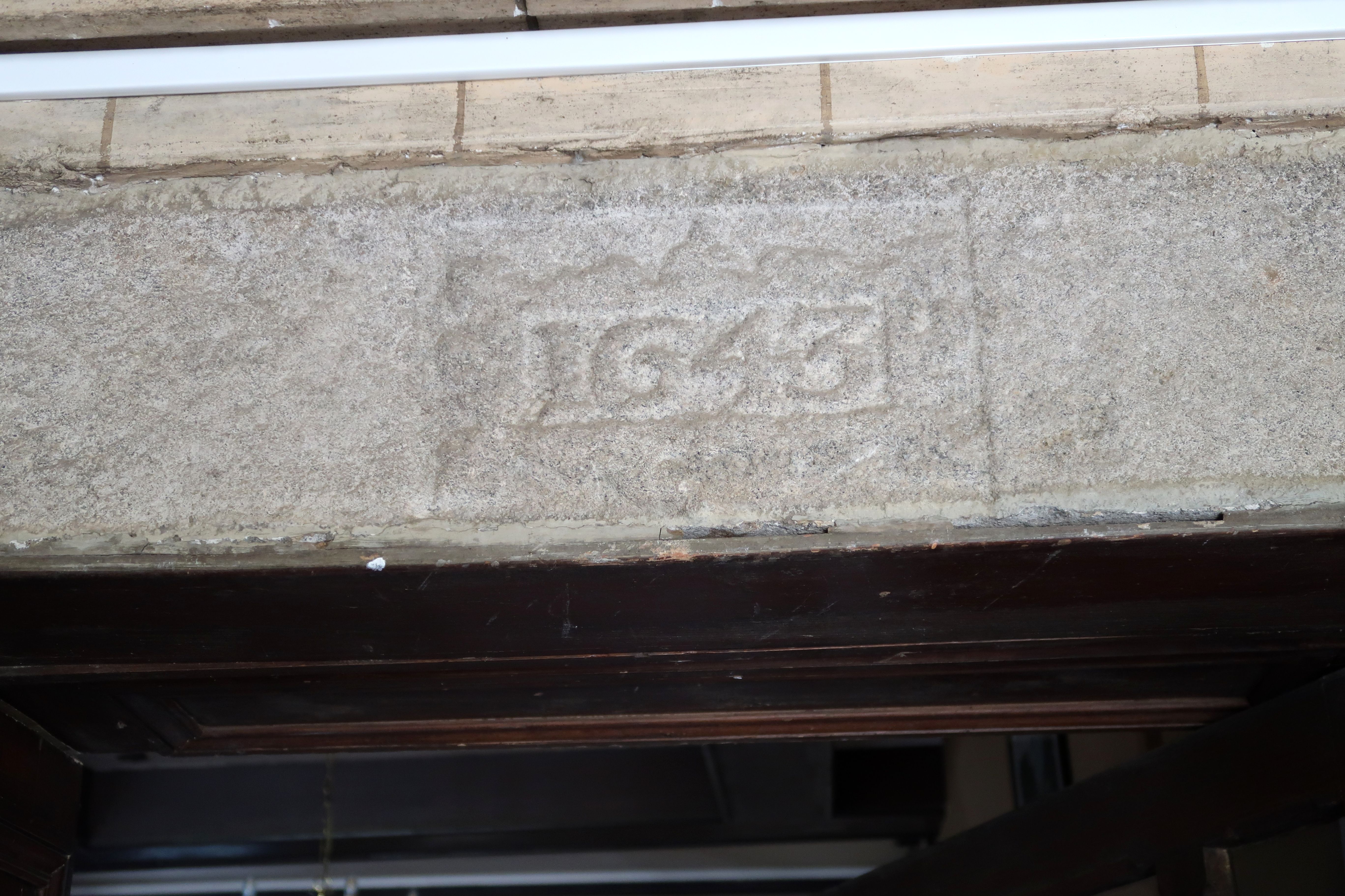 L'ancienne porte du manoir masquée par un vestibule, linteau daté 1643Immatriculation