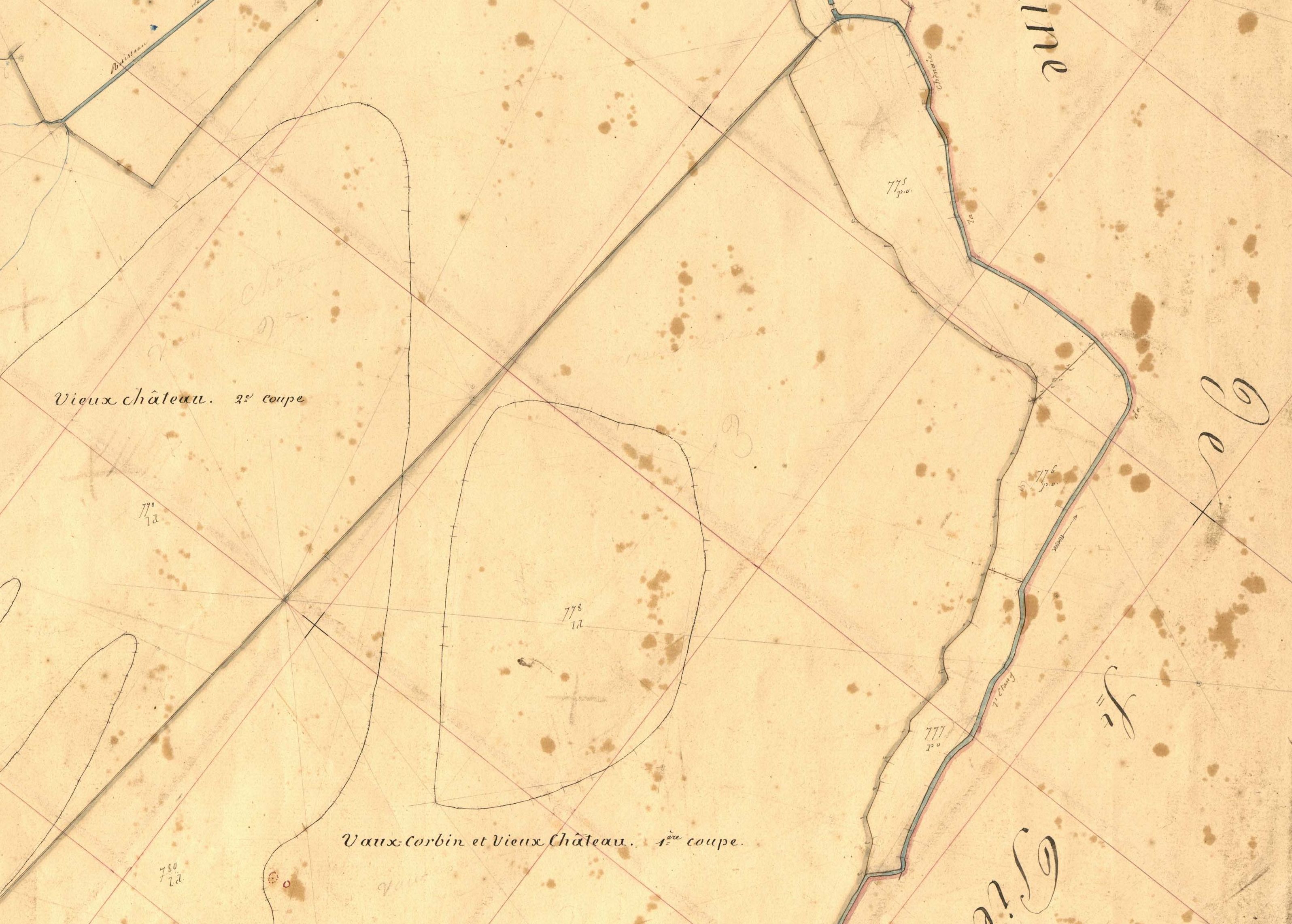 Emplacement de la motte féodale, en lisière de forêt, et en limite de commune avec Saint-Pierre de Plesguen, 1844 B4 778Immatriculation