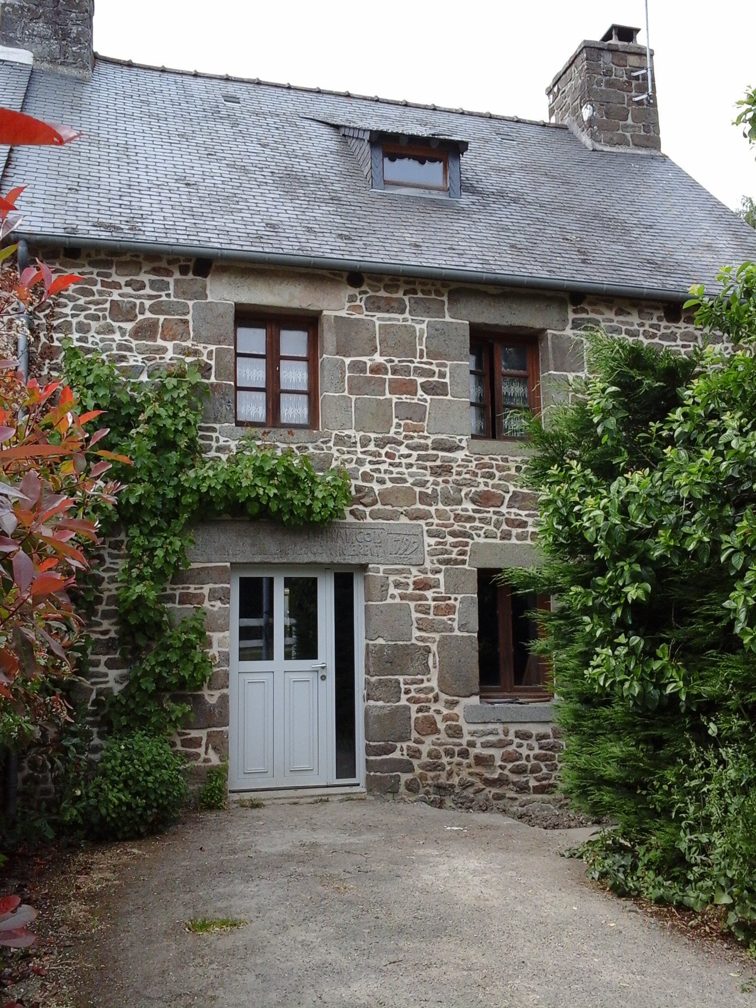 Alignement nord du champ de foire, maison datée 1799 avec inscription : FAIT PAR : CHALLE : FRANCOIS FERMINE : GILETTE COMMEREVTImmatriculation