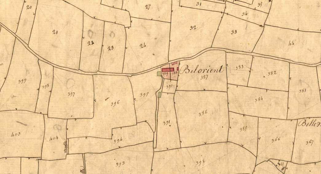 Belorient en 1828. Extrait du cadastre ancien, section B1 (Archives départementales des Côtes-d'Armor, série P, sous série 3P 265)Immatriculation