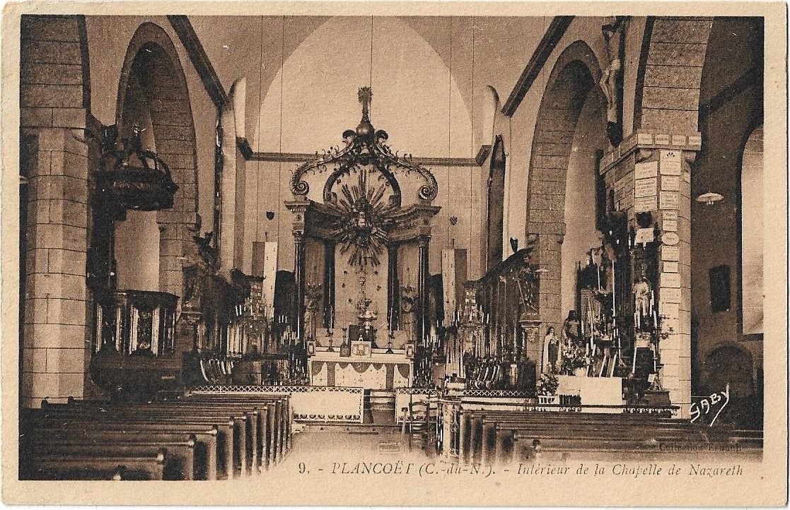 Carte postale de l'intérieure de l'église de Nazareth, vue vers le choeur (état début 20e siècle).Immatriculation