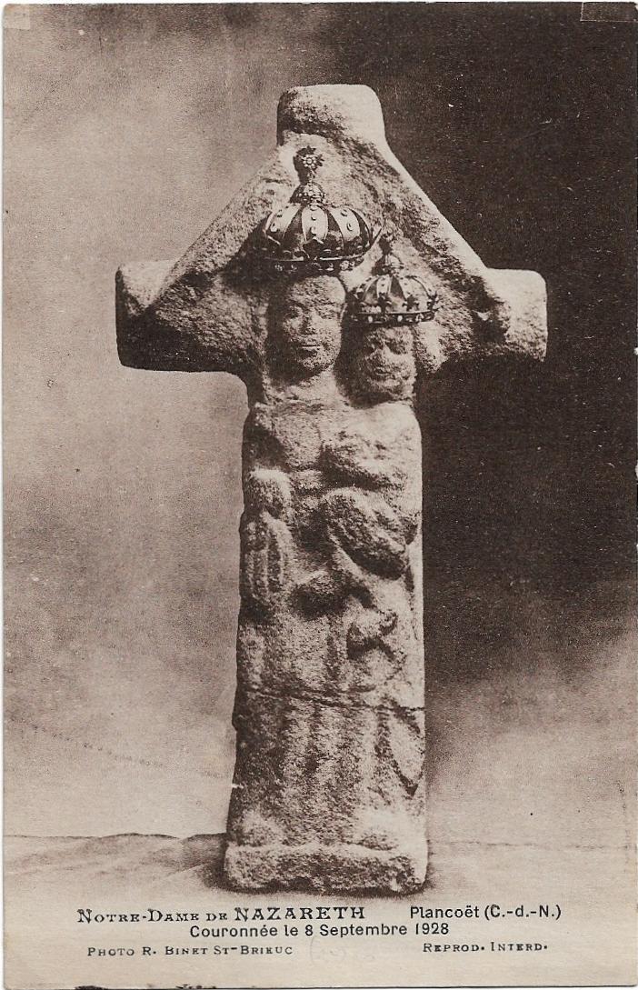 Carte postale de la statue de la Vierge à l'Enfant découverte dans la fontaine Ruellan après son couronnement (état après 1928).Immatriculation