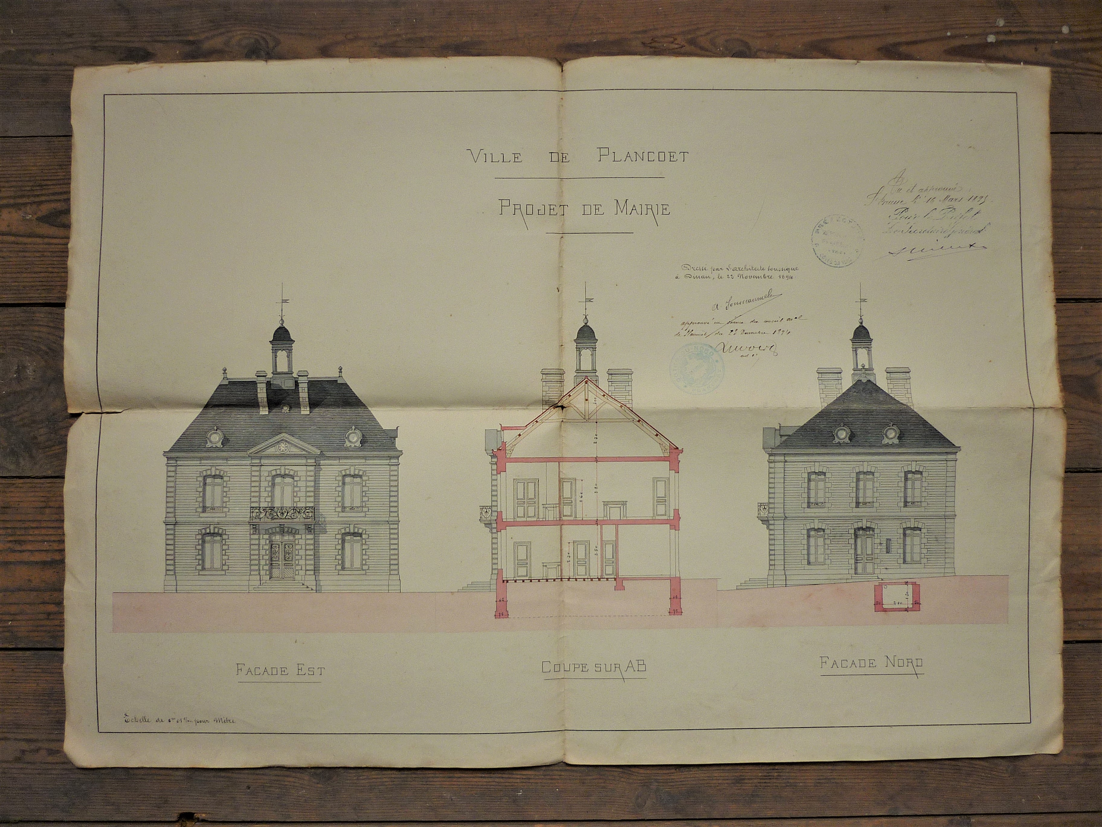 Façade et coupe du projet de la nouvelle Mairie de 1894.-