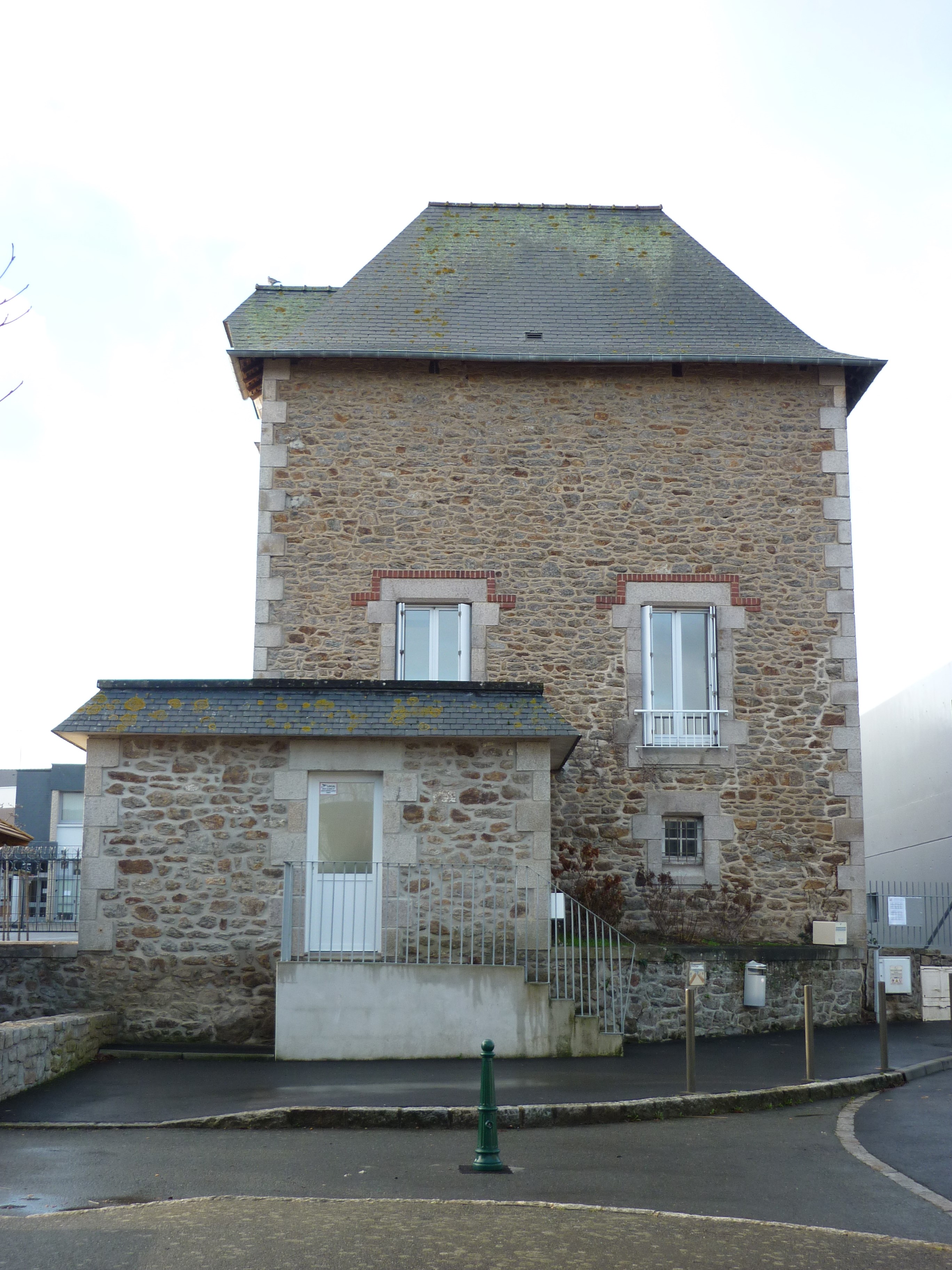 Façade est du pavillon d'habitation à l'est des salles de classes.Immatriculation