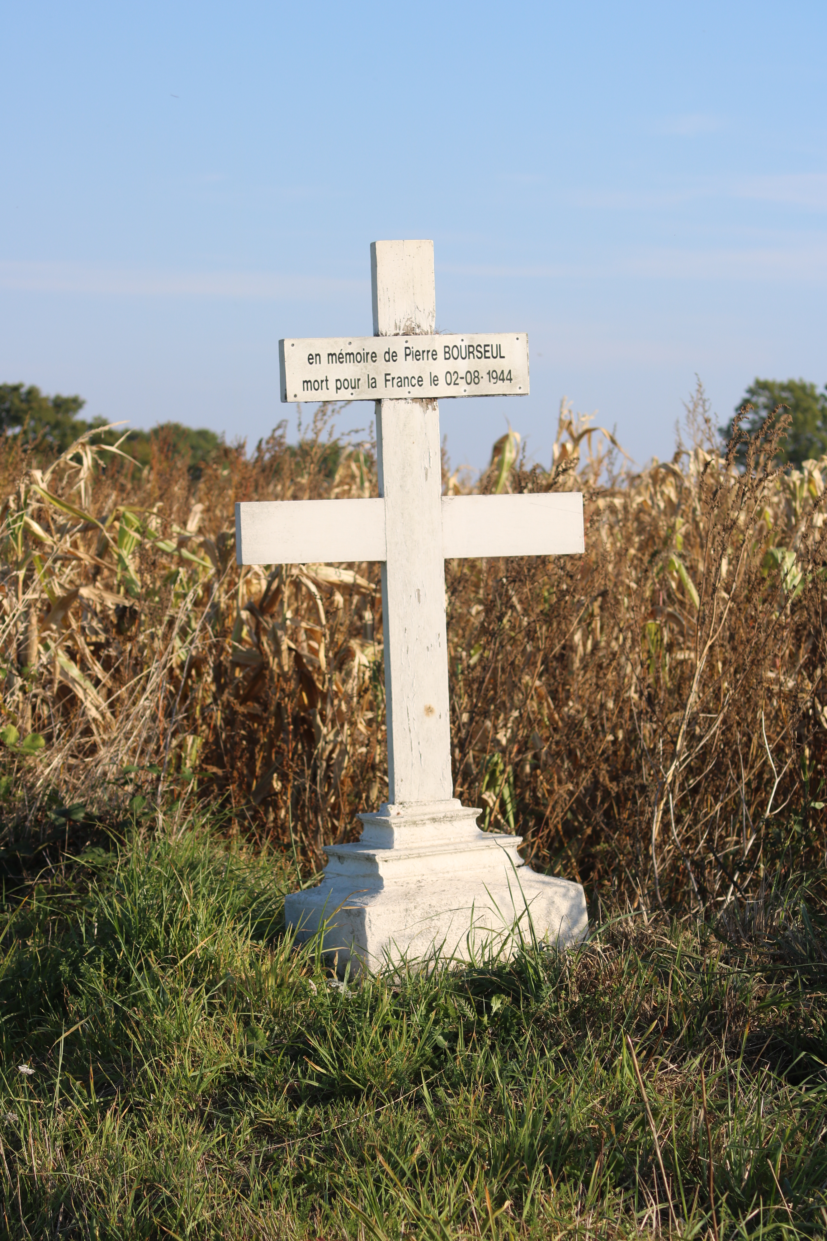 Croix de commémoration de la mort d'un résistant lors de la seconde Guerre Mondiale.Immatriculation