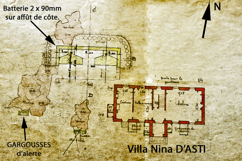 Plan de l’emplacement de batterie de 2 x 90 mm modèle 1881 sur affût de côte modèle 1879 (source : Service Historique de la Défense, Cherbourg)Immatriculation