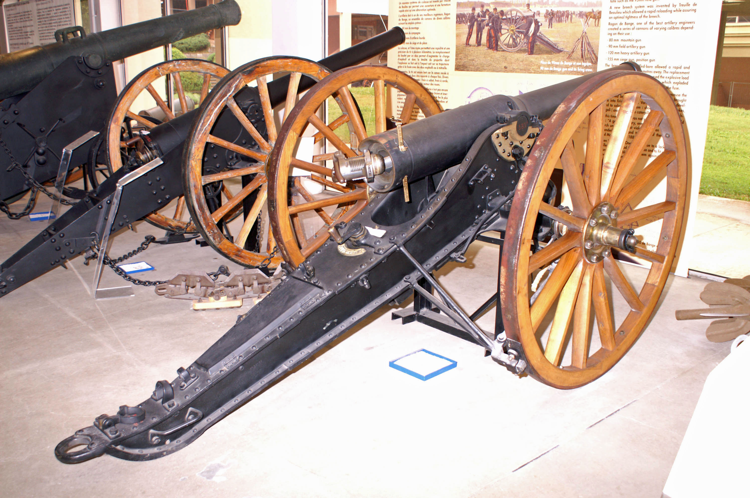 Canon de 90 mm modèle 1877 sur affût de campagne (collection : Musée de l’Artillerie de Draguignan) (photographie : Alain Bohée)Immatriculation