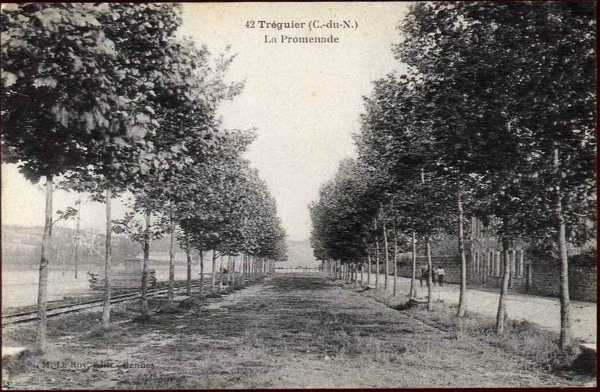Ligne Tréguier - Perros-Guirec, la voie au bord de la promenade plantée sur le grand quai, carte postale (collection réunie par Michel Le Hénaff)Immatriculation