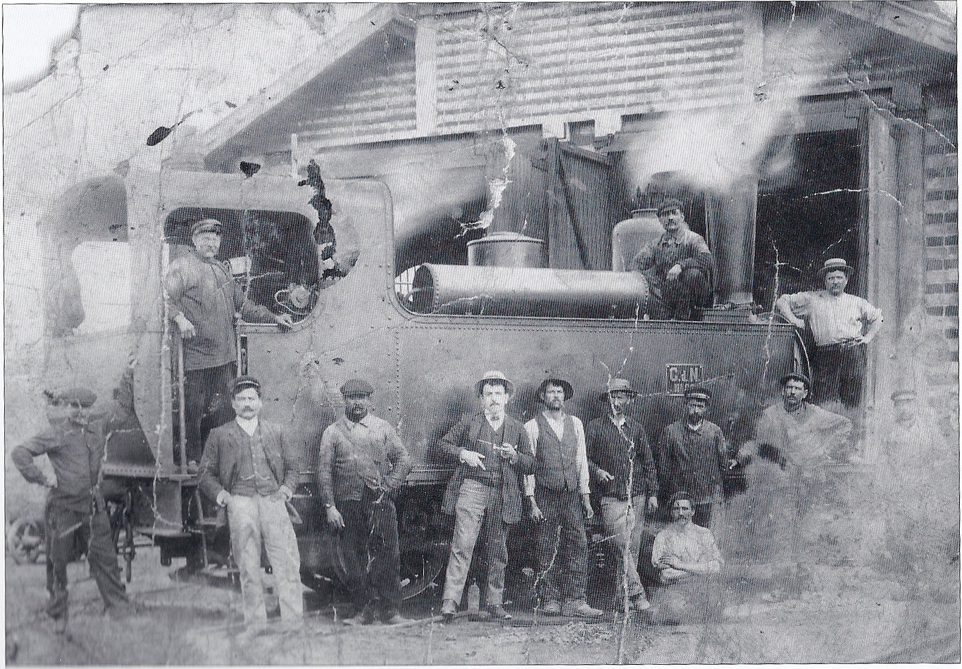 Première construction en aval pont Canada, l’équipe de mécaniciens devant une locomotive Corpet-Louvet (source inconnue, reproduction de Christian Chouteau)Immatriculation