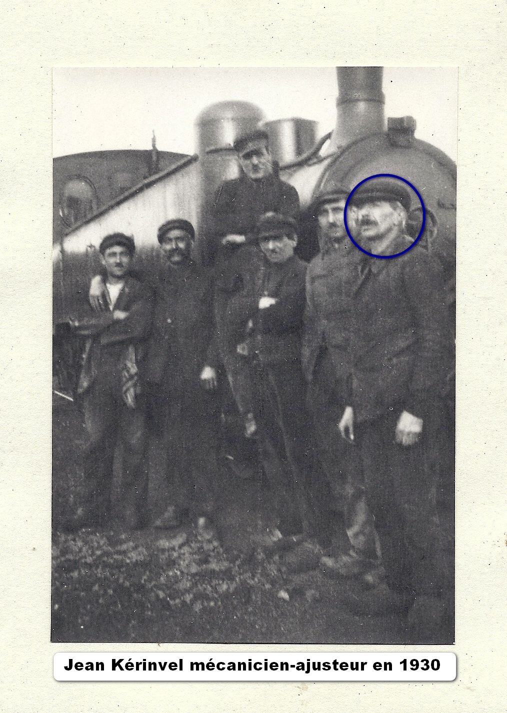 L’équipe de mécaniciens devant une locomotive Blanc-Misseron, au premier plan Jean Kerinvel, mécanicien de 1910 à 1932 (photographie de sa petite-fille, madame le Trocquer)Immatriculation