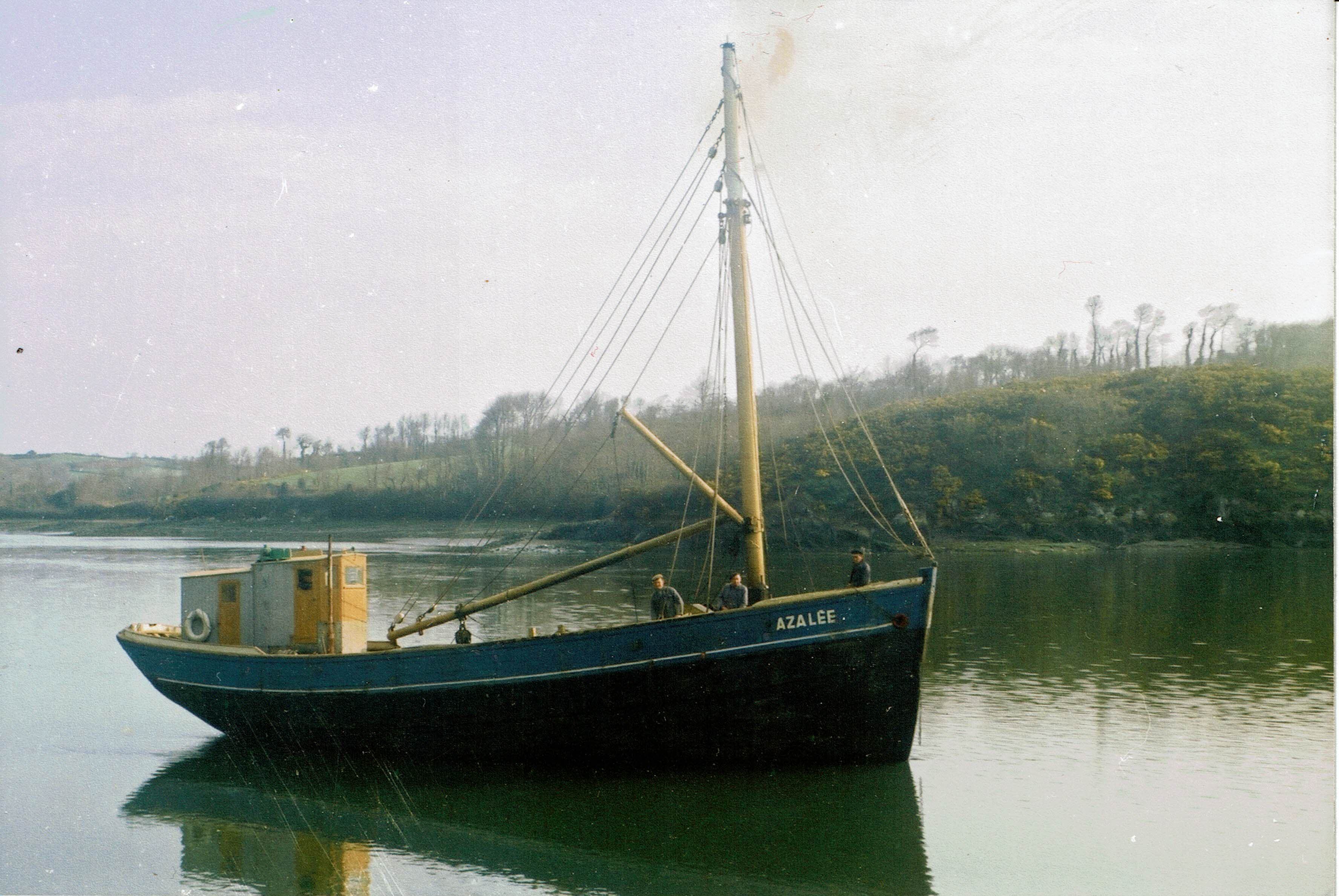 L'Azalée de l’armement Le Jolu, à son arrivée à Tréguier, le 23 septembre 1957. Le mat de charge d’origine est encore à posteImmatriculation