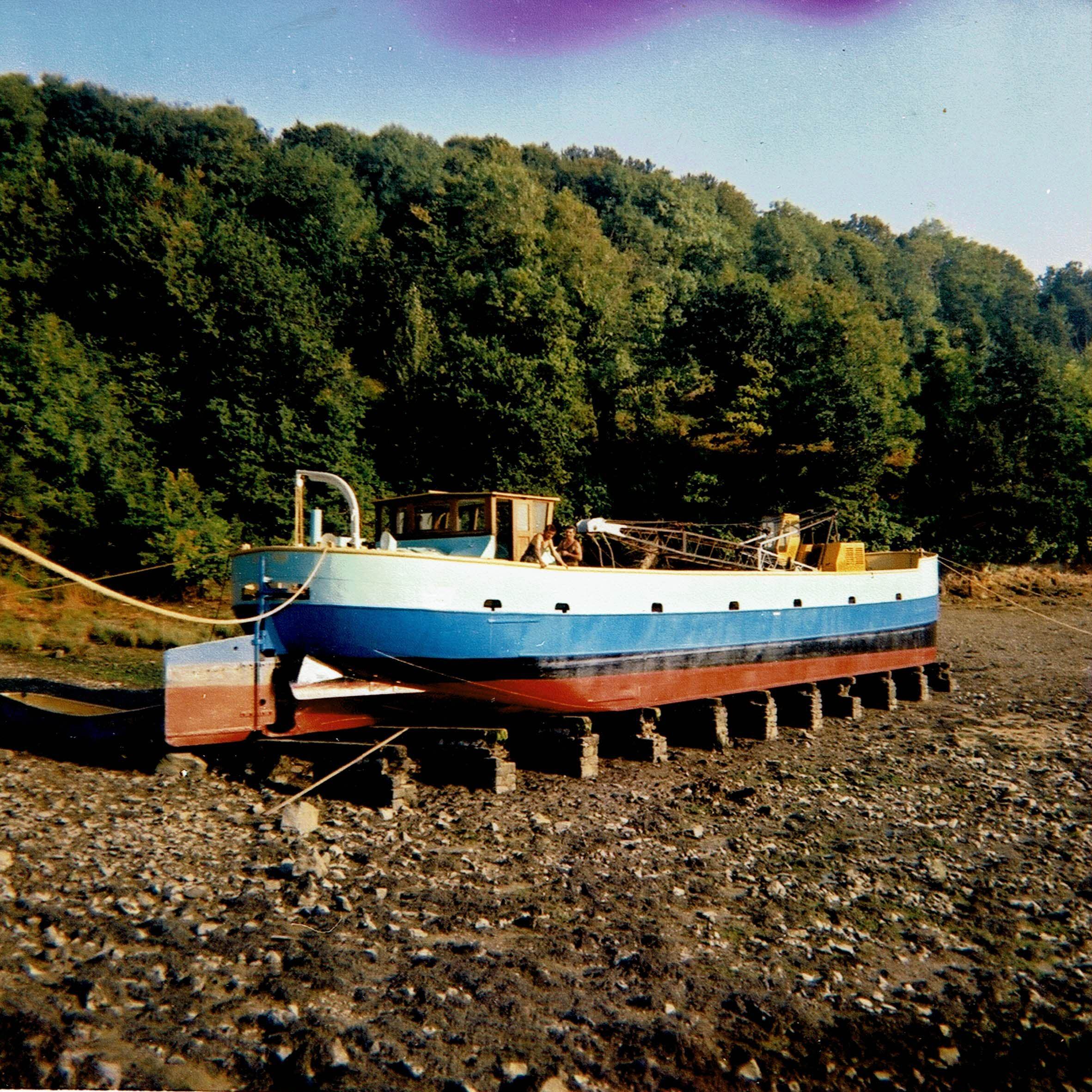 Fleur du Trégor au carénage sur tins, toujours en place à la grève de Traou Durand sur le Trieux en face le port de Lézardrieux. La carène montre bien que les Trégorrois en la nommant "la péniche" n’avait pas tortImmatriculation