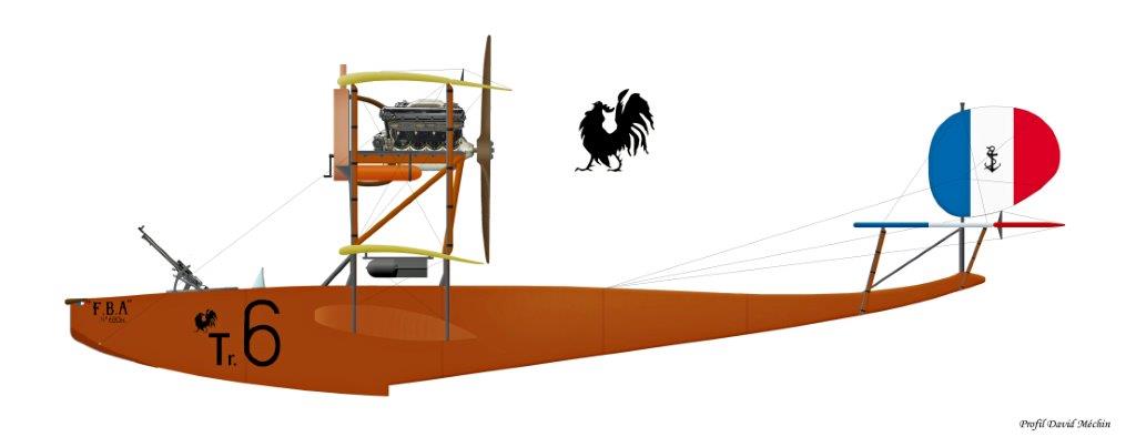 FBA 150 n°620, codé Tr6 (dessin de David Méchin - Association pour la Recherche de Documentation sur l’Histoire de l’Aéronautique Navale). Tr" : pour Tréguier, suivi d’un chiffre qui identifie l’hydravionImmatriculation