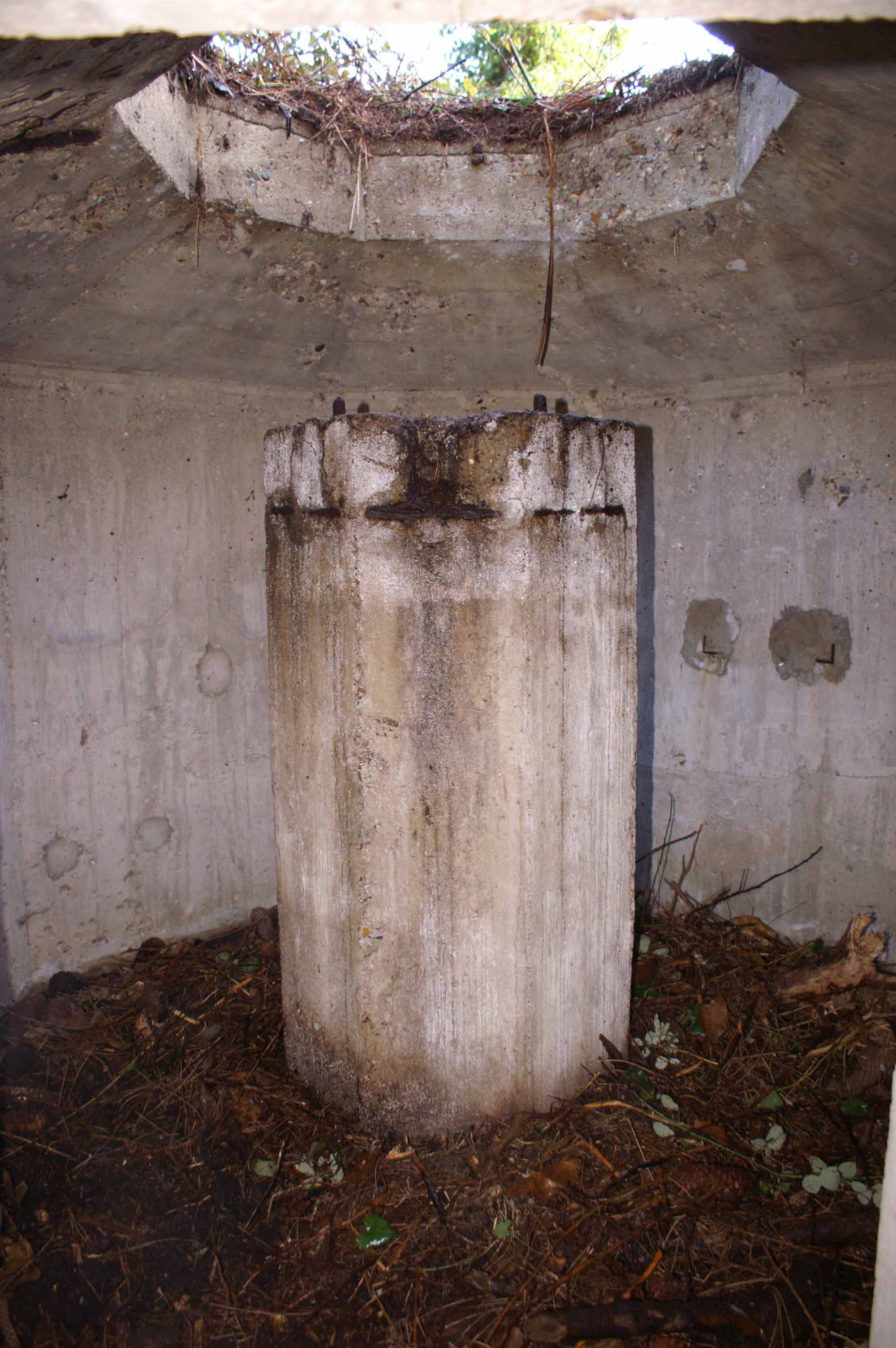 Photographie de l'abri type 61a, profil de la colonne en béton sur laquelle est en batterie le mortier de 5 cmImmatriculation