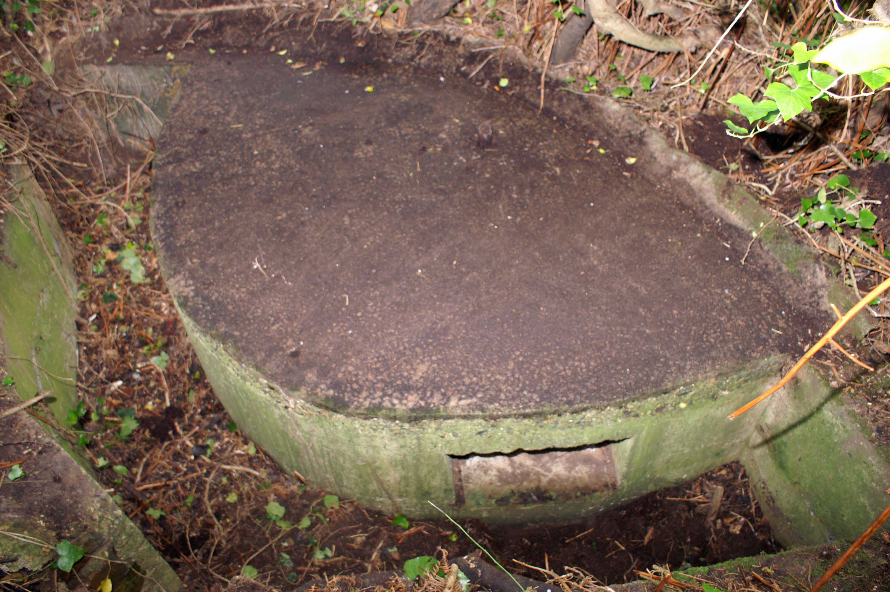 Cet emplacement est placé sur la courbe de niveau des 20 mètres. Il défend la zone dégagé sur la façade est de l’île à Bois. A droite du massif en béton on distingue le pivot de l’affût. Côté du tireur on remarque des marques dans le béton qui correspondent à des tirs repérésImmatriculation