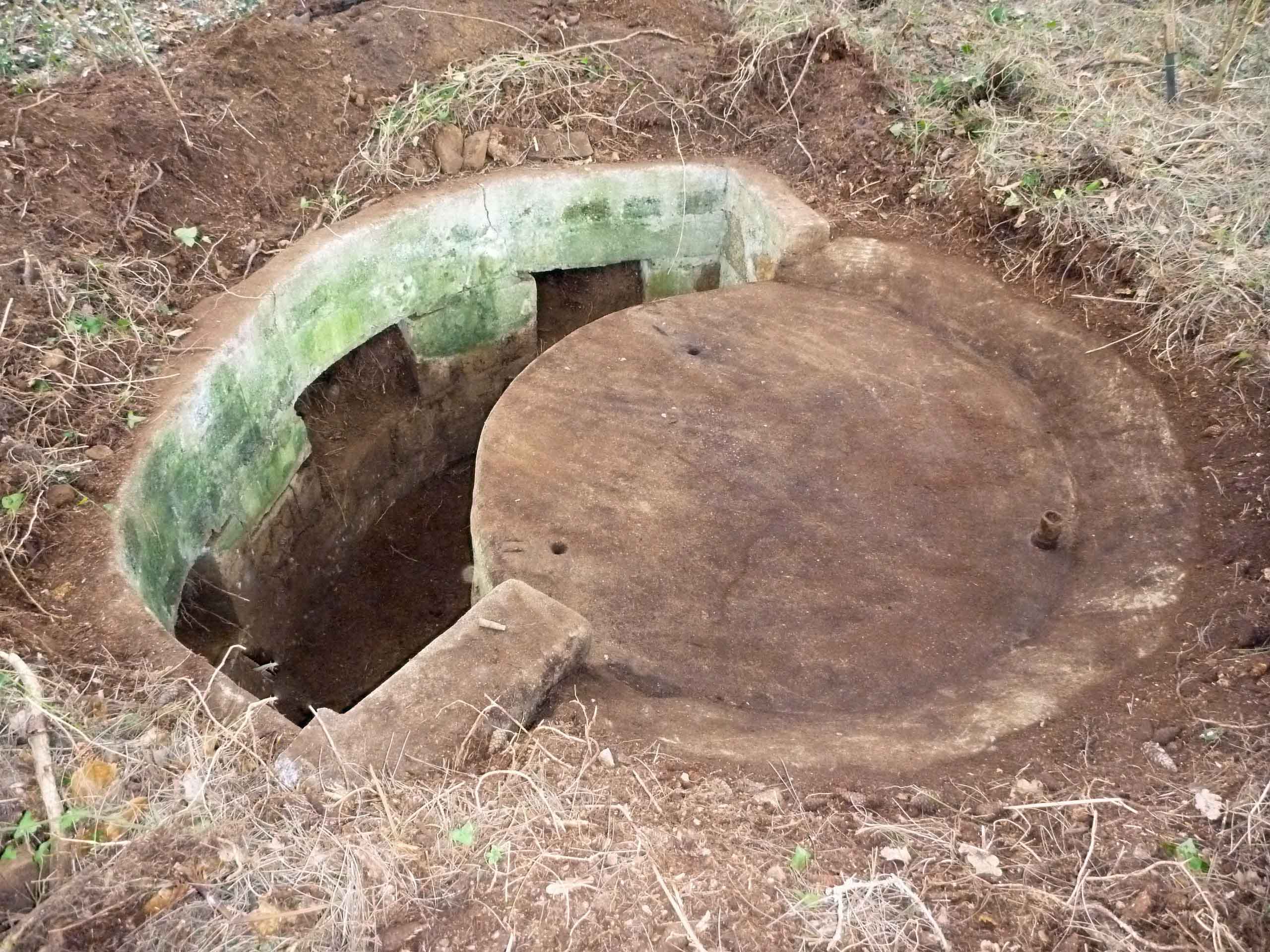 L’emplacement pour une arme automatique de la côte est de l’île à Bois. Les niches à munitions ne sont pas dans le parados mais dans le massif en béton sur lequel repose la mitrailleuseImmatriculation