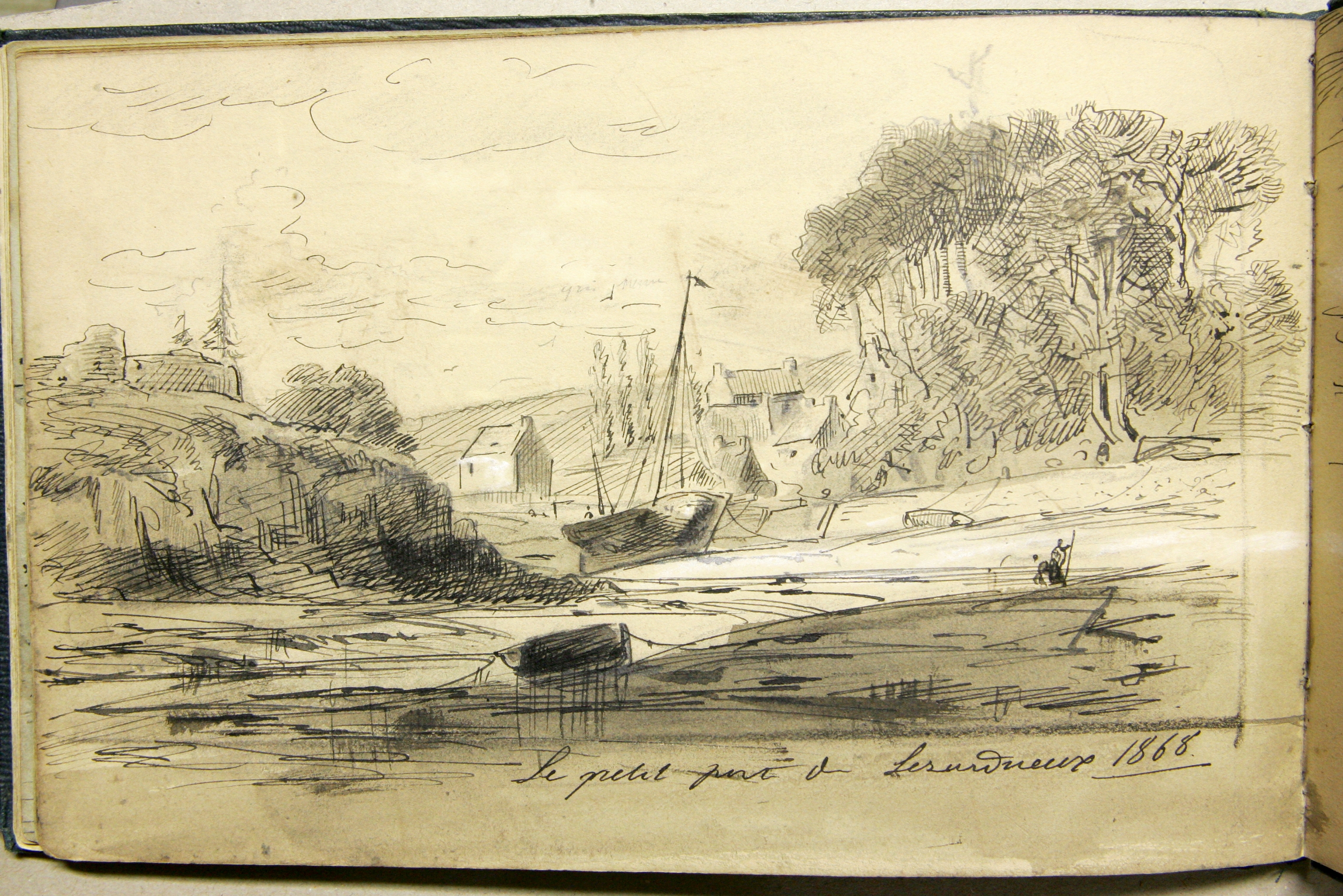 Le port de Lézardrieux daté de 1868, Faudacq, fin 19ème siècle, dessin à la plumeImmatriculation
