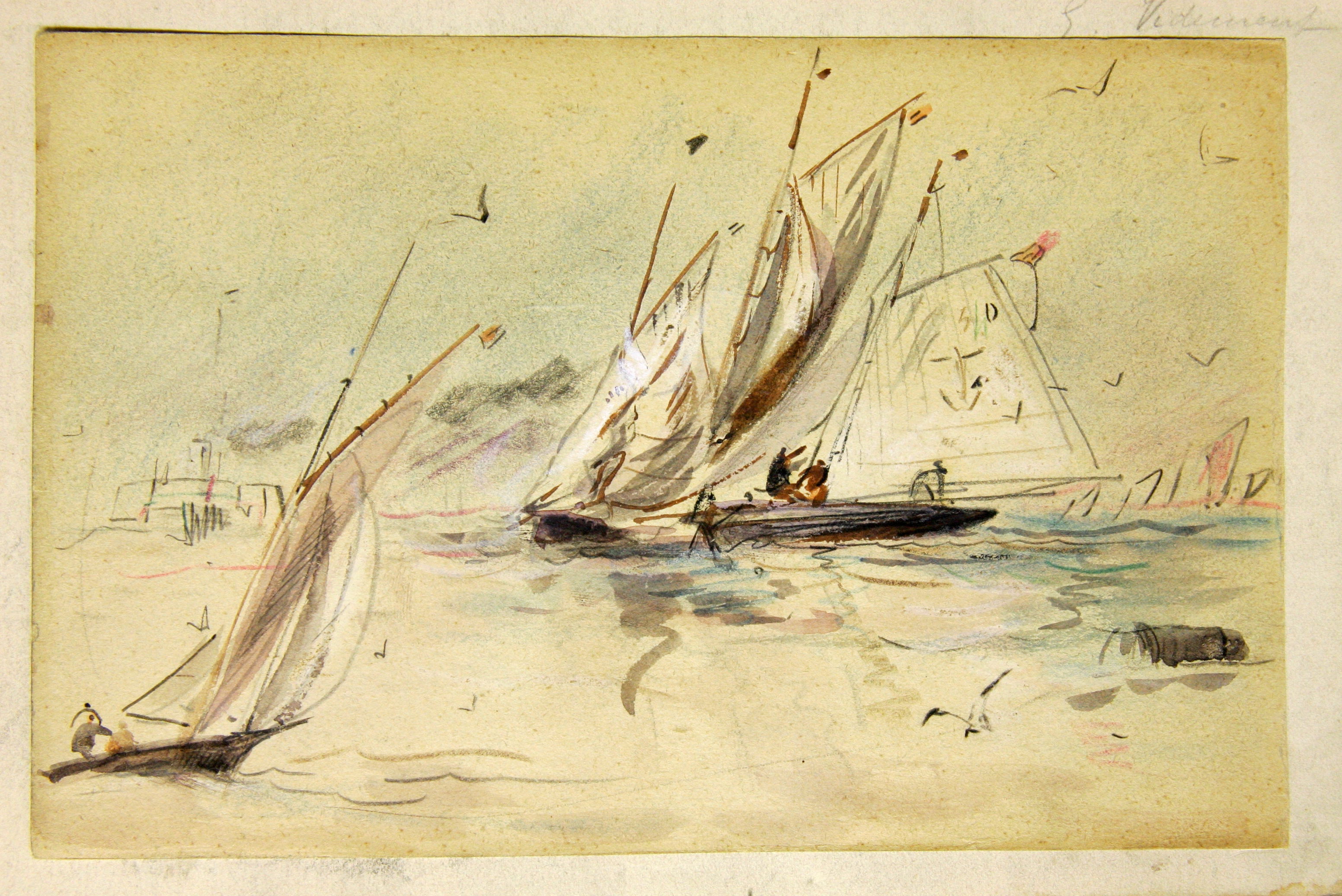 Slops en régate, dessin aquarellé (Faudacq)Immatriculation