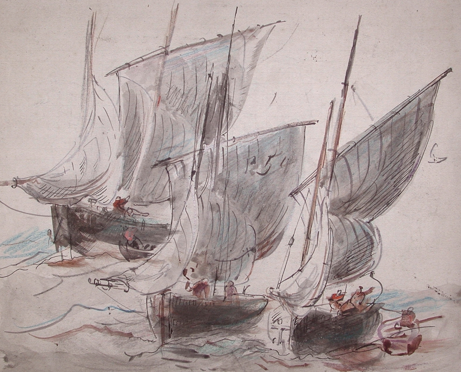 Misainiers en régate, dessin aquarellé (Faudacq)Immatriculation