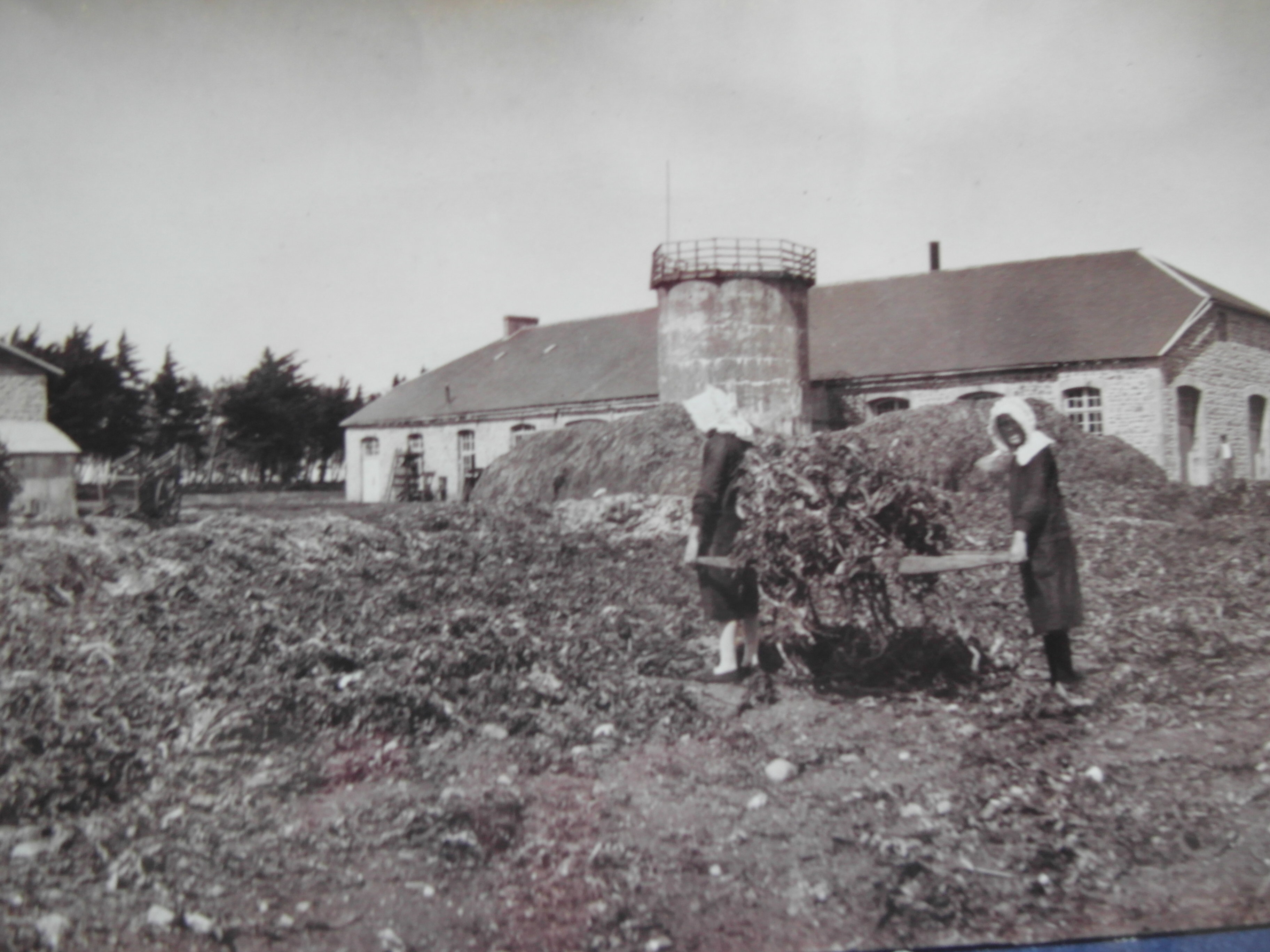 Devant l’usine d’algues Maton, vers 1925 : femmes avec civière pour tranporter les goémonsImmatriculation