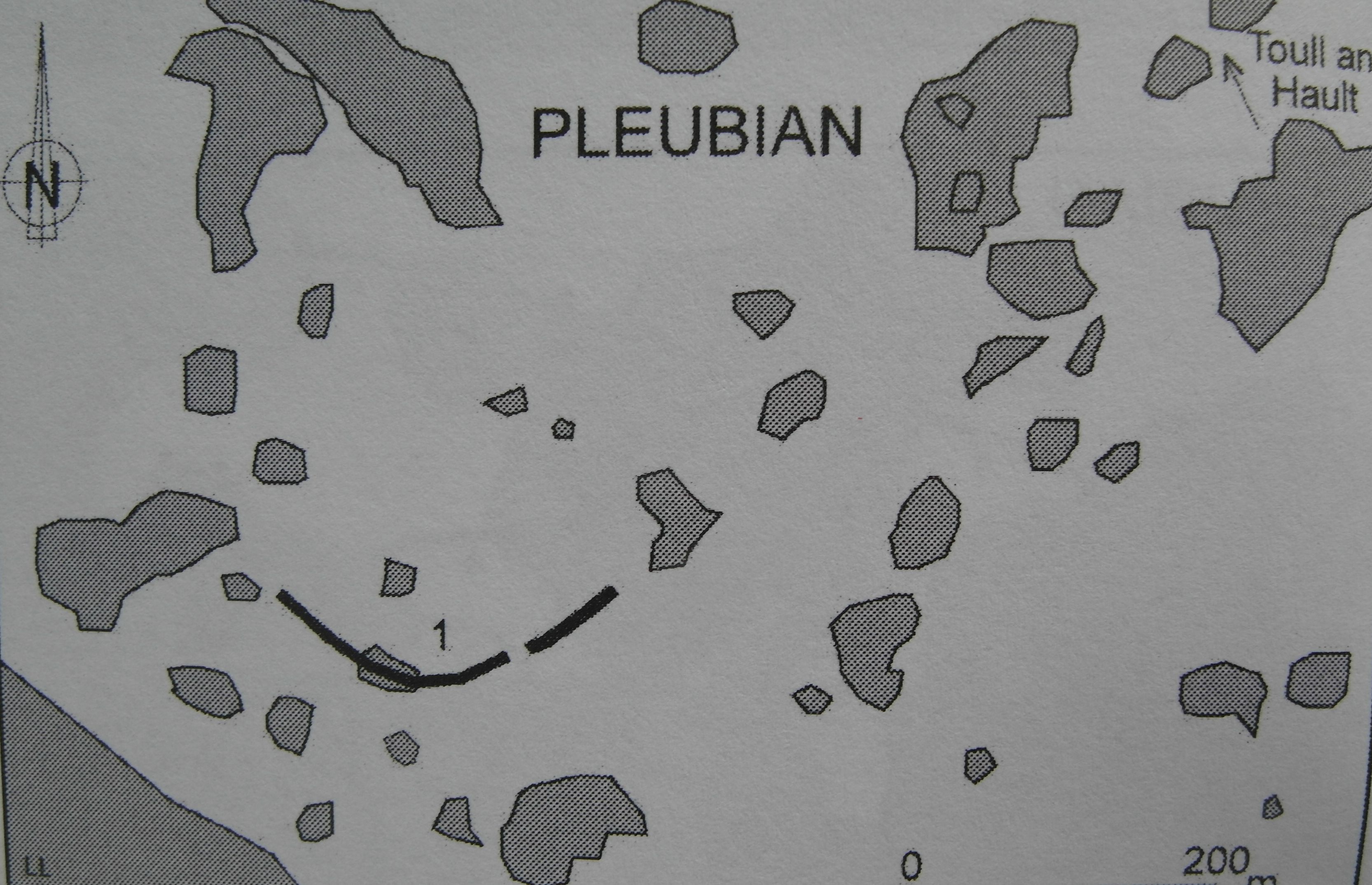 Barrage en pierres au sud-est de Roc’h Toull an Hault, long de 226 m avec un pertuis centralImmatriculation