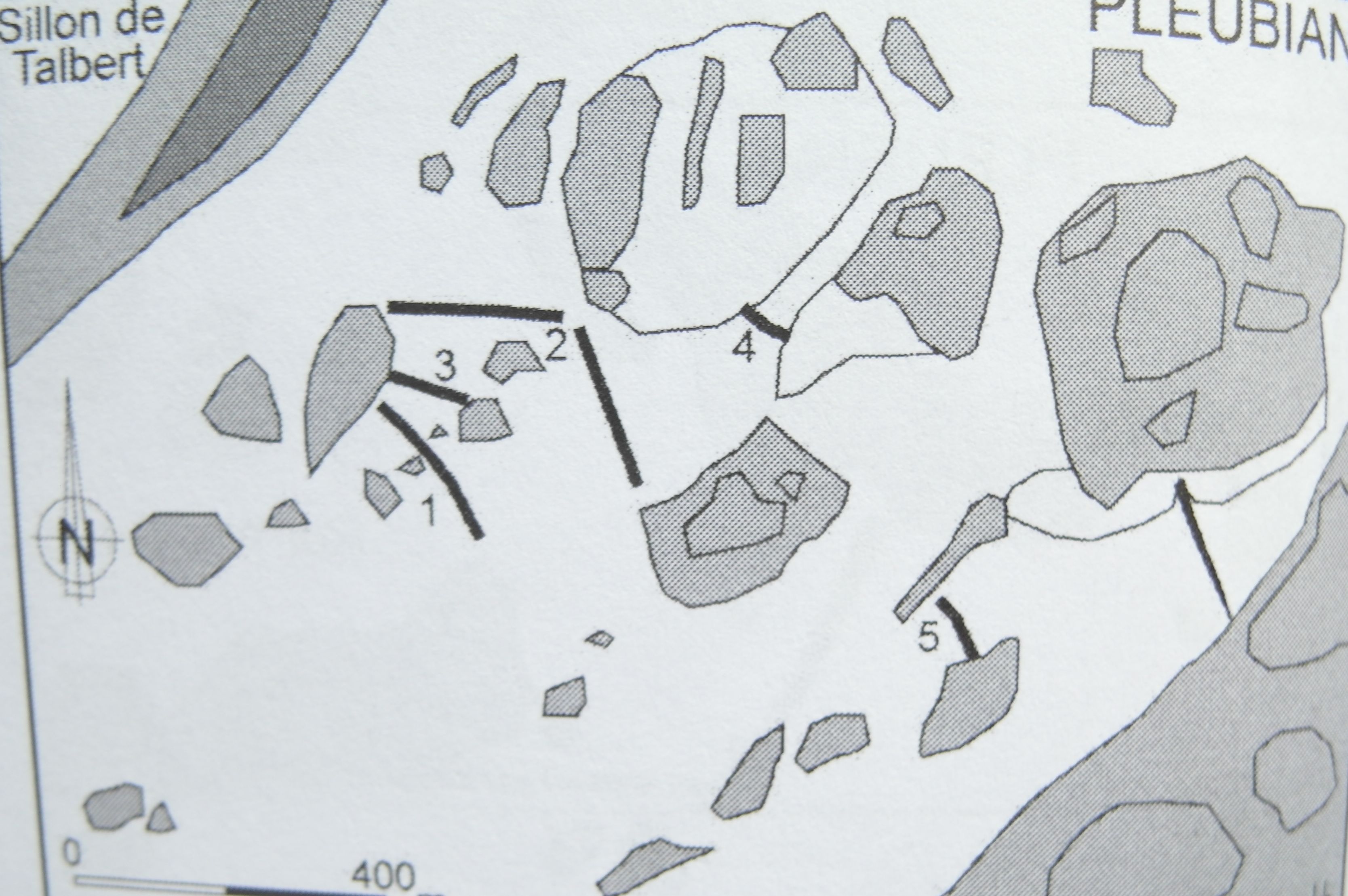 Quatre pêcheries entre le Sillon de Talbert et Roc’h Liorzo, du type barrages en pierres (dessin : Loïc Langouët)Immatriculation