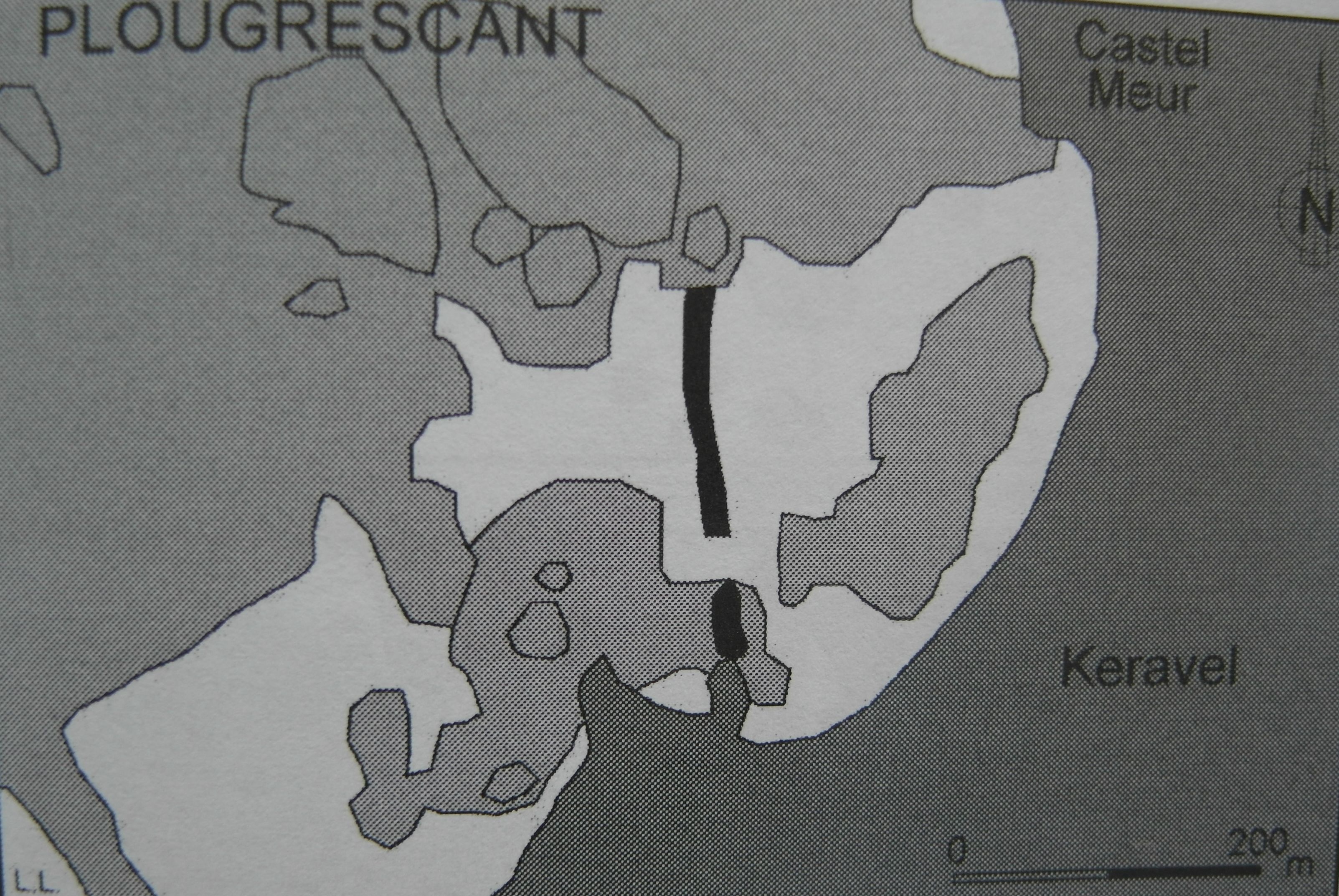 Barrage en pierres de Keravel à Plougrescant (dessin : Loïc Langouët)Immatriculation