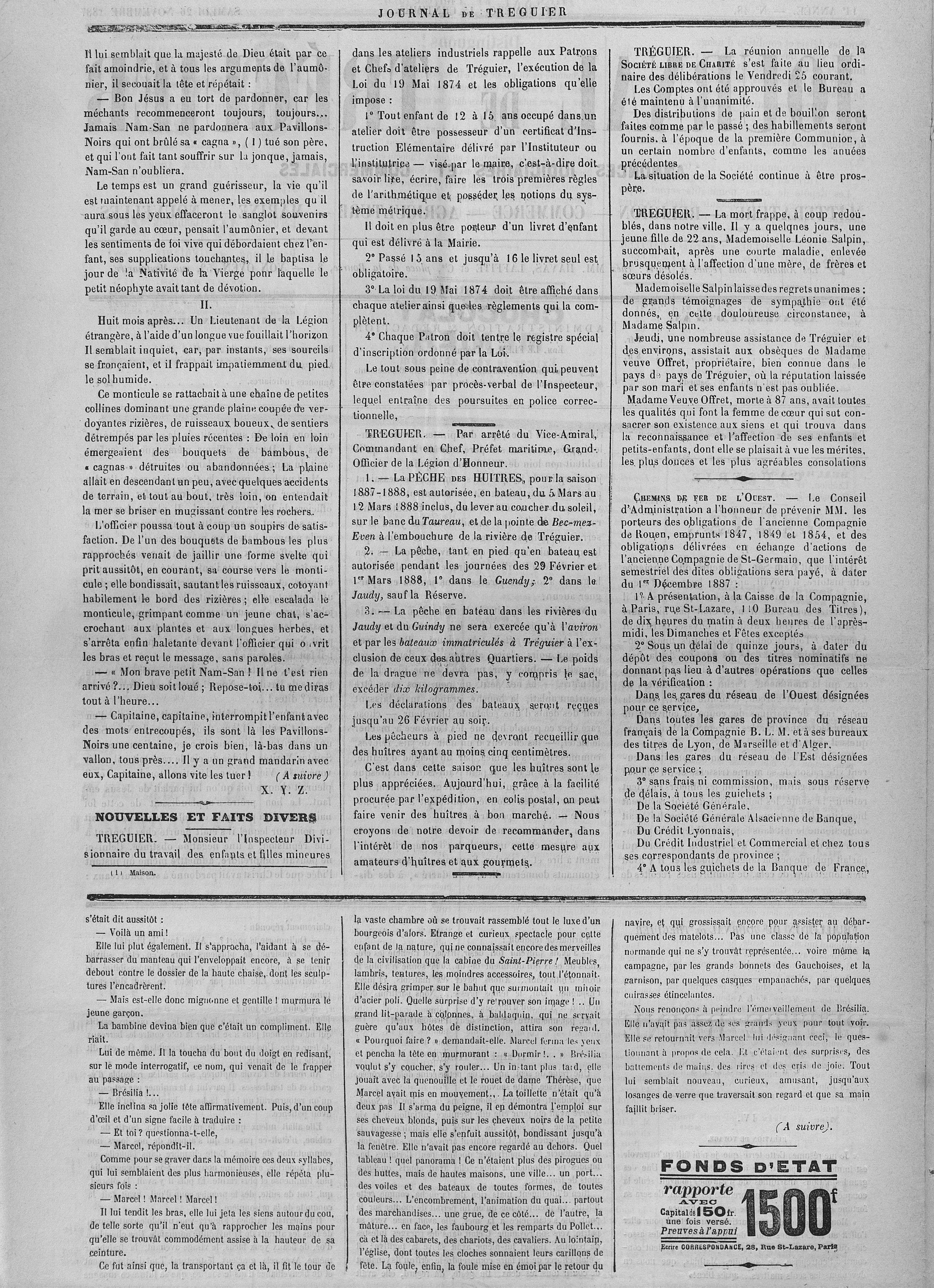 Extrait du journal de Tréguier, pêche aux huîtres, 1886 (source : Archives départementales des Côtes-d'Armor)Immatriculation