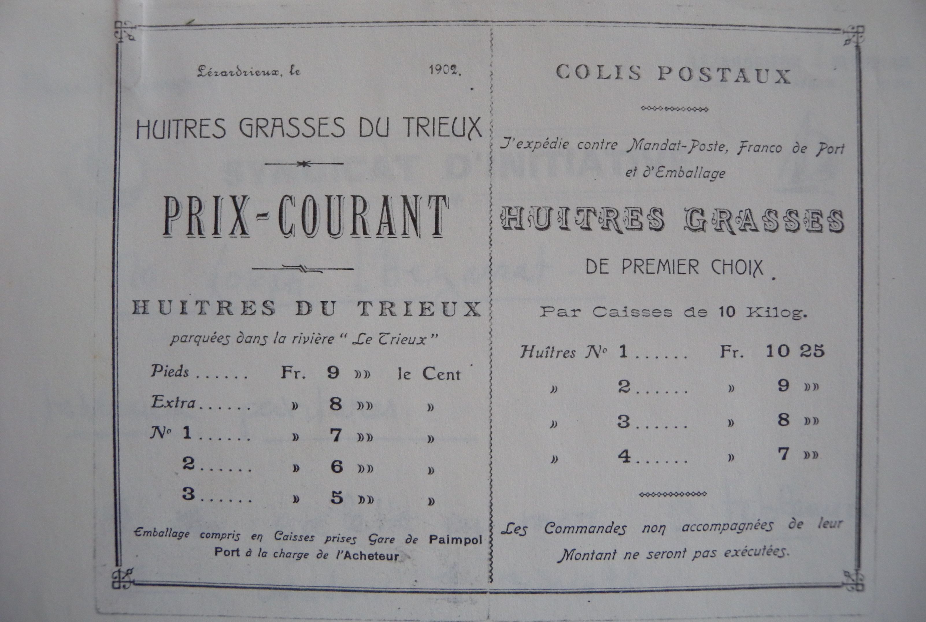 Publicité pour la vente des huîtres du Trieux pour l’établissement Guézennec, 4e quart du 19e siècle (collection particulière)Immatriculation