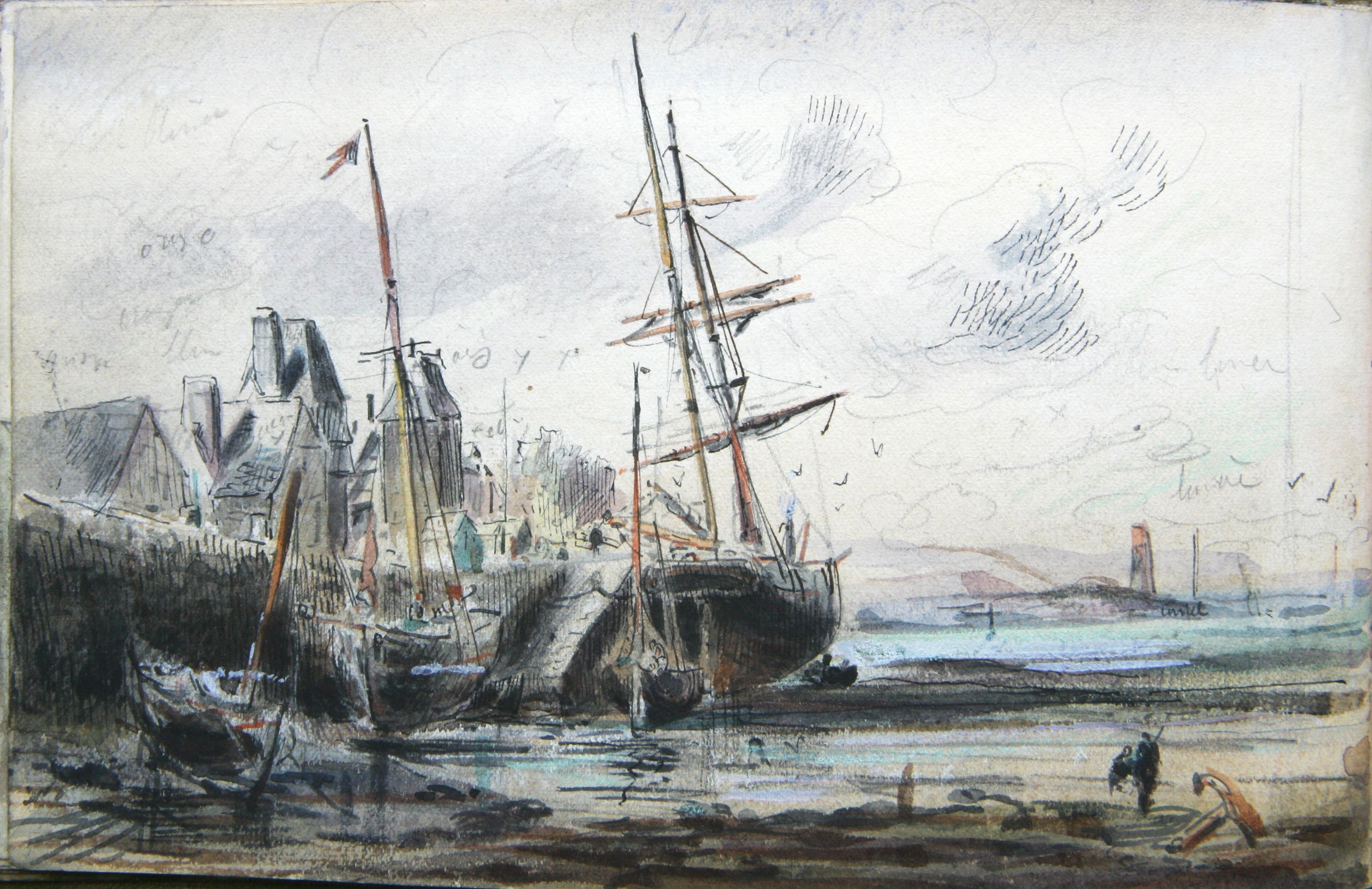 Le front de port de Tréguier, dessin aquarellé, (Faudacq)Immatriculation