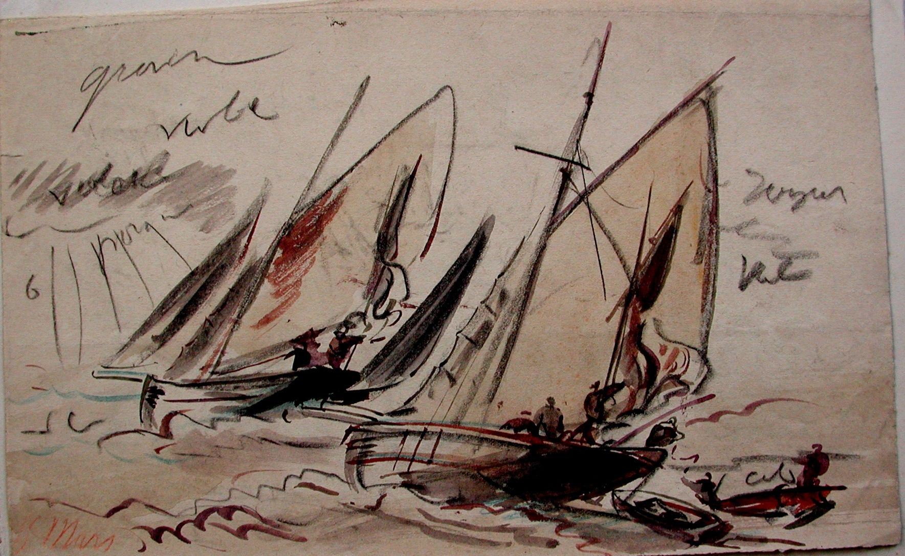 Régates à Tréguier, dessin aquarelle FaudacqImmatriculation