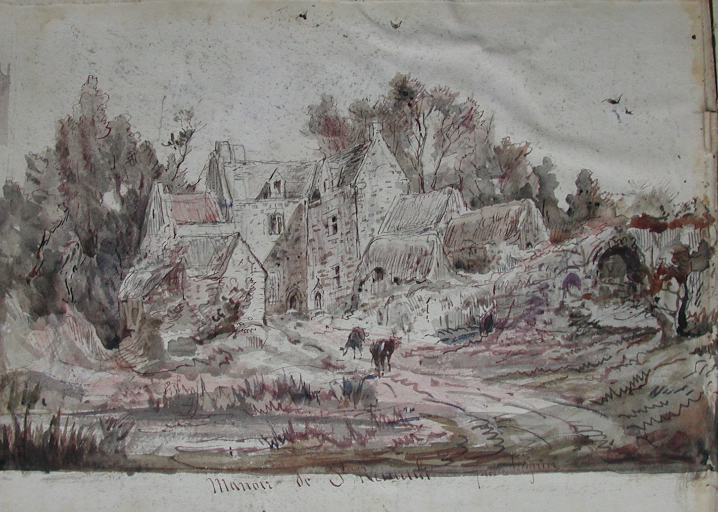 Le manoir de St-Renaud en amont du Guindy, dessin aquarellé Faudacq (Faudacq)Immatriculation
