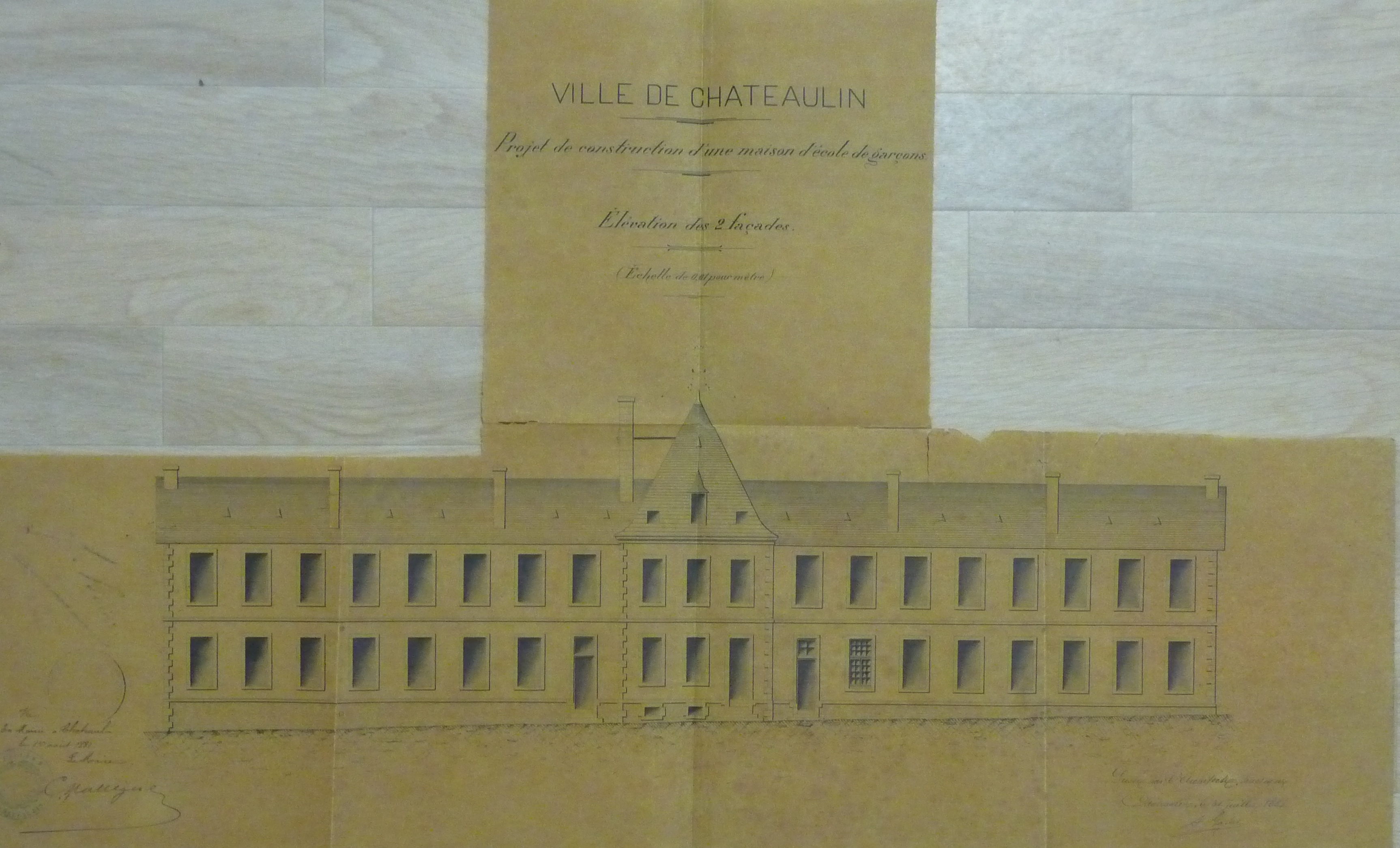 Ecole communale des garçons, actuellement Groupe scolaire Marie Curie et RASED, rue Raoul Anthony (Châteaulin),