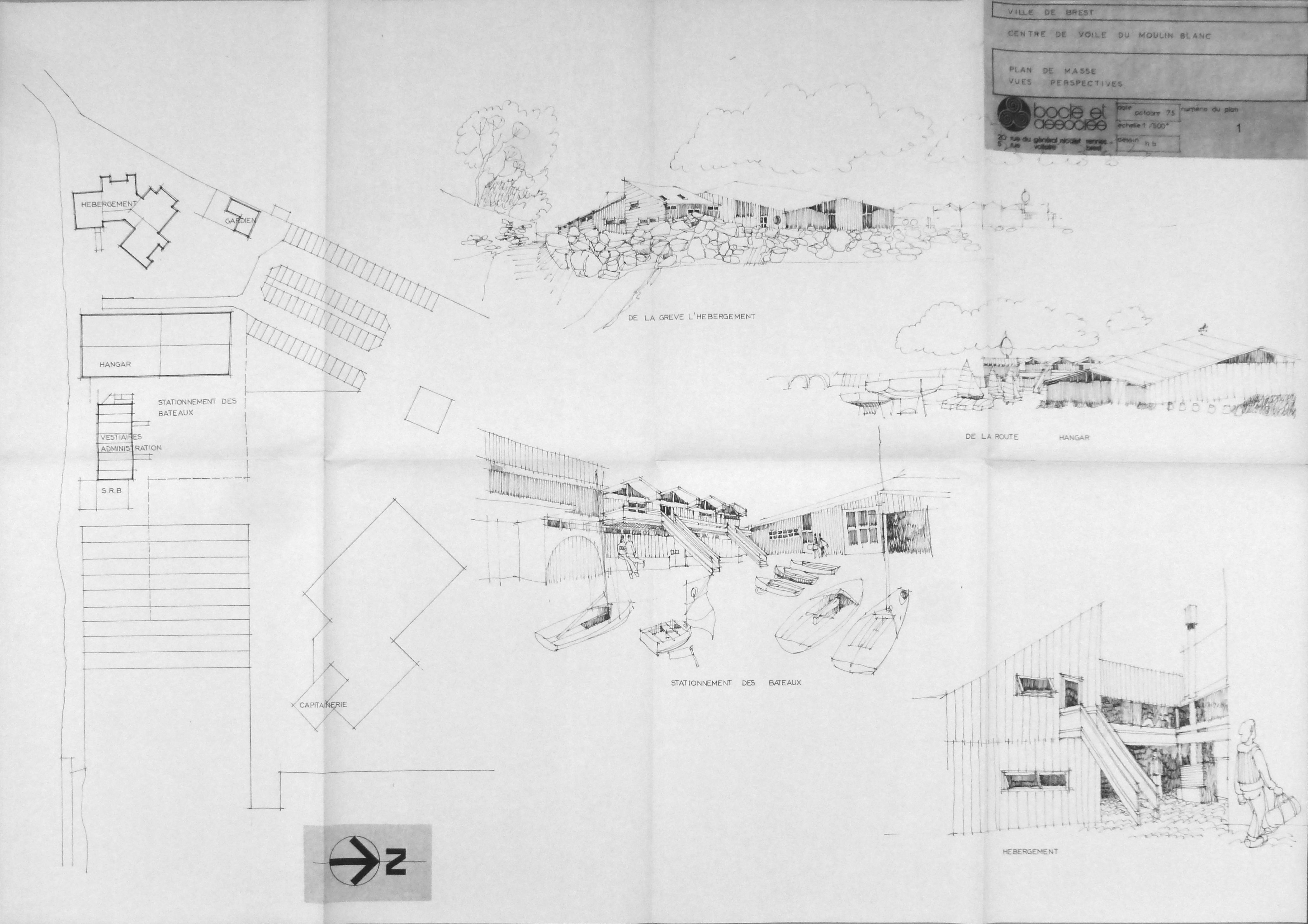 AD Ille-et-Vilaine : 1242 W 111. Plan de masse-vues perspectives. B. Boclé, 1975.