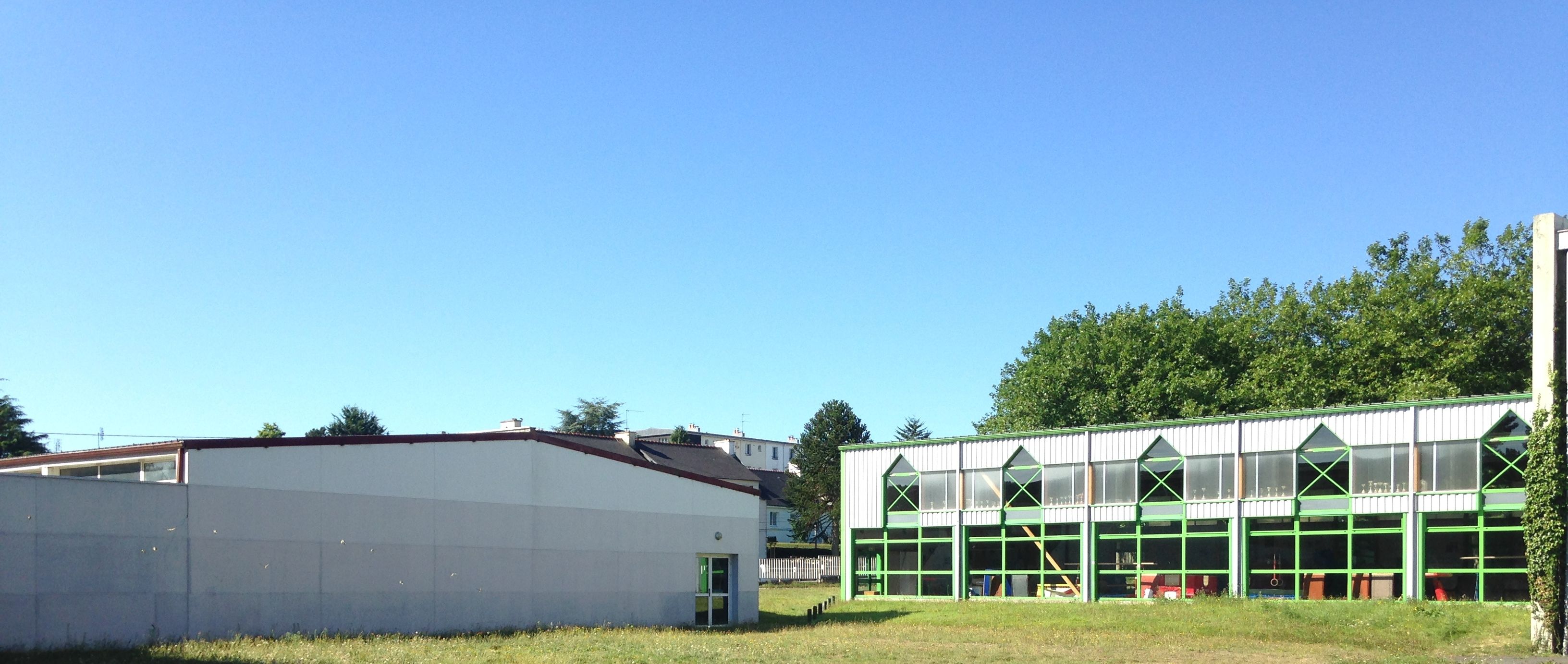 Façade est de la salle de gymnastique et pignon nord de la salle de combatsImmatriculation