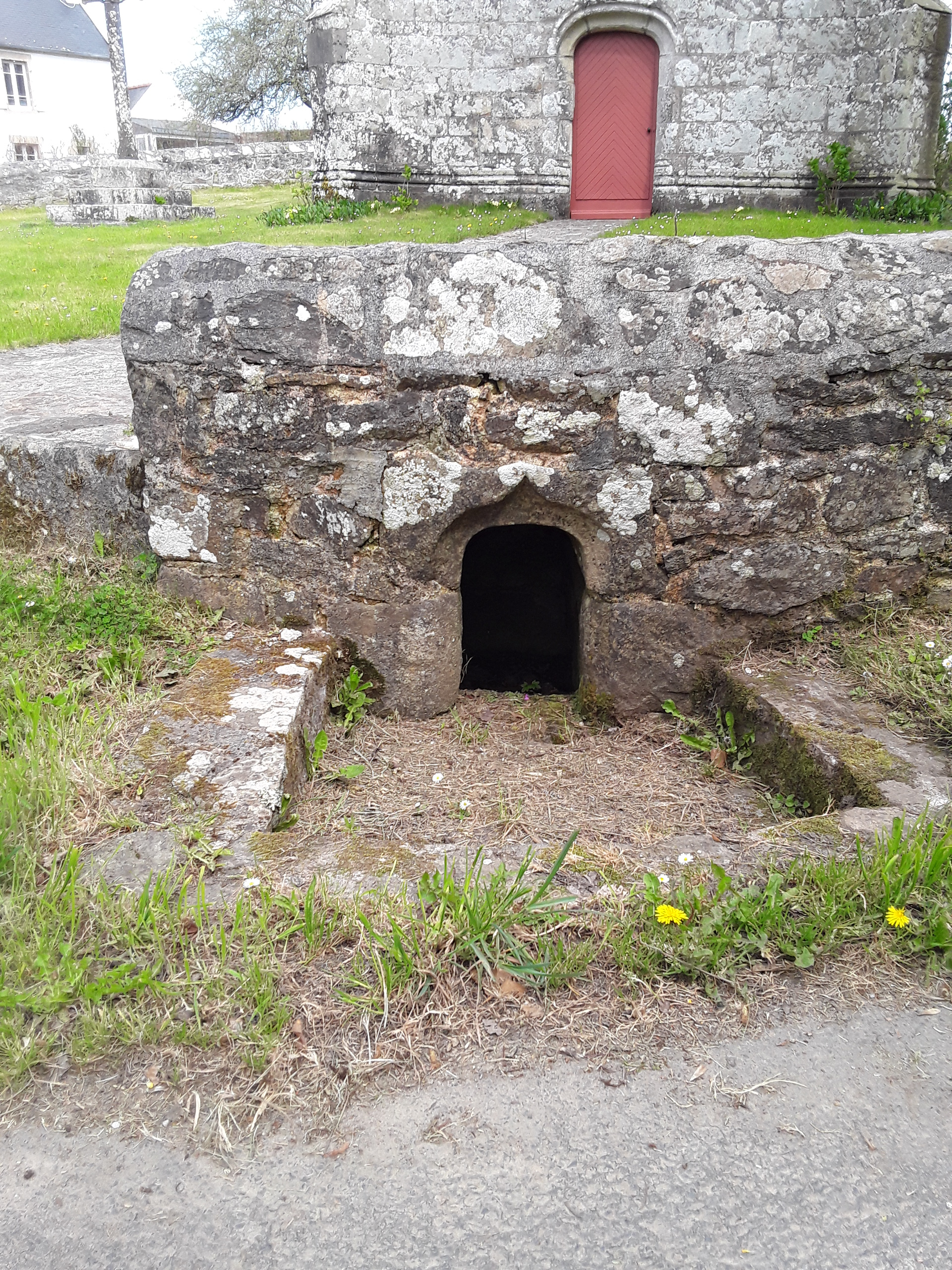 Fontaine encastrée dans le mur d'enclos, vue prise de l'ouest. (2018)Immatriculation