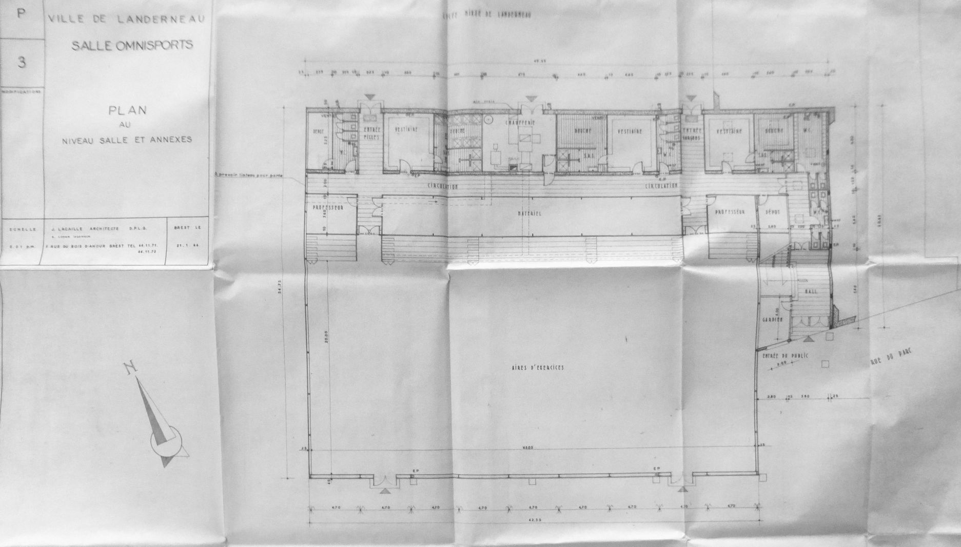 AC Landerneau : 1 M. Plan niveau salle et annexes. J. Lacaille, 1966.