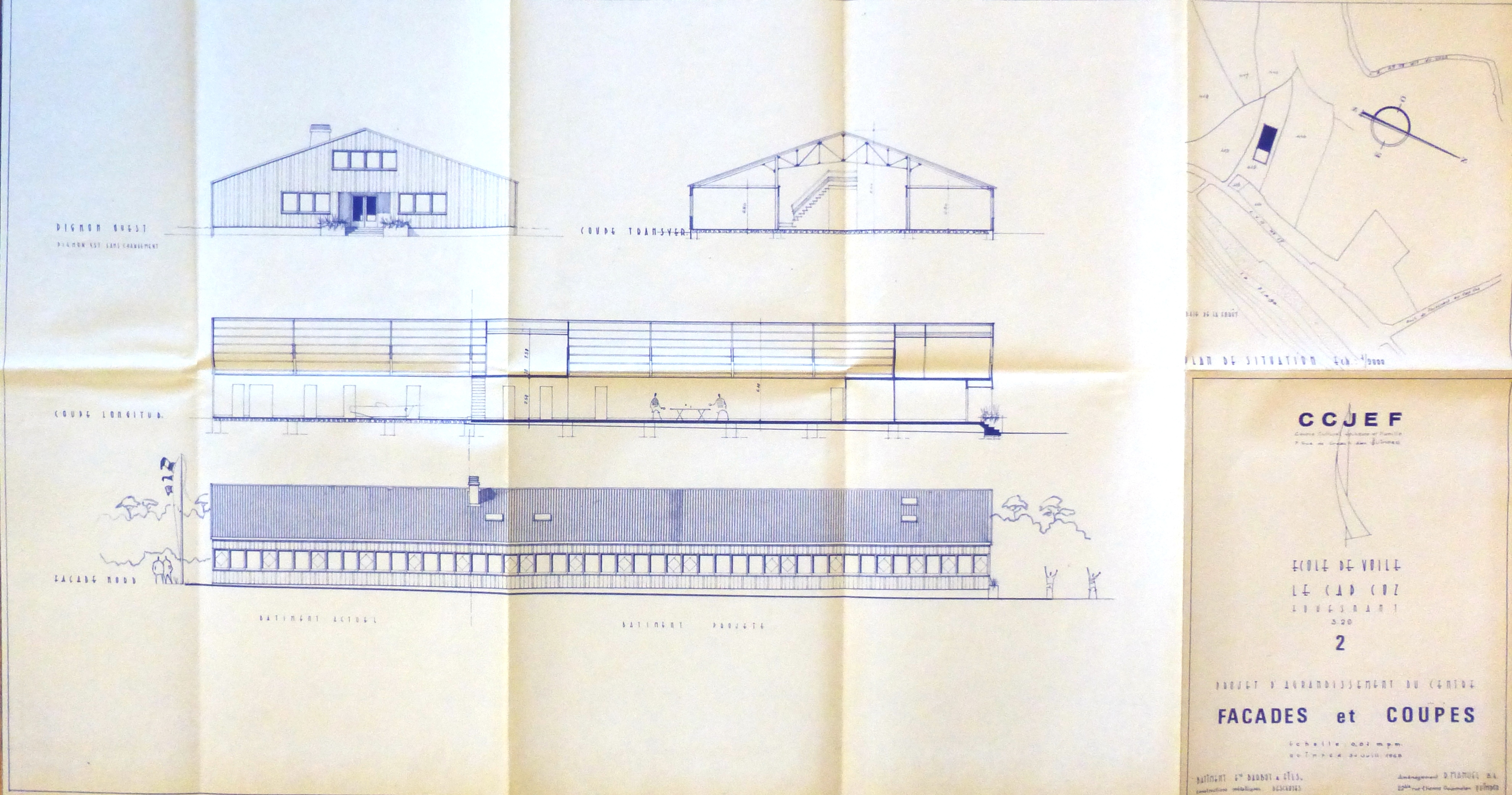 Façades et coupes du premier bâtiment (1968)Immatriculation