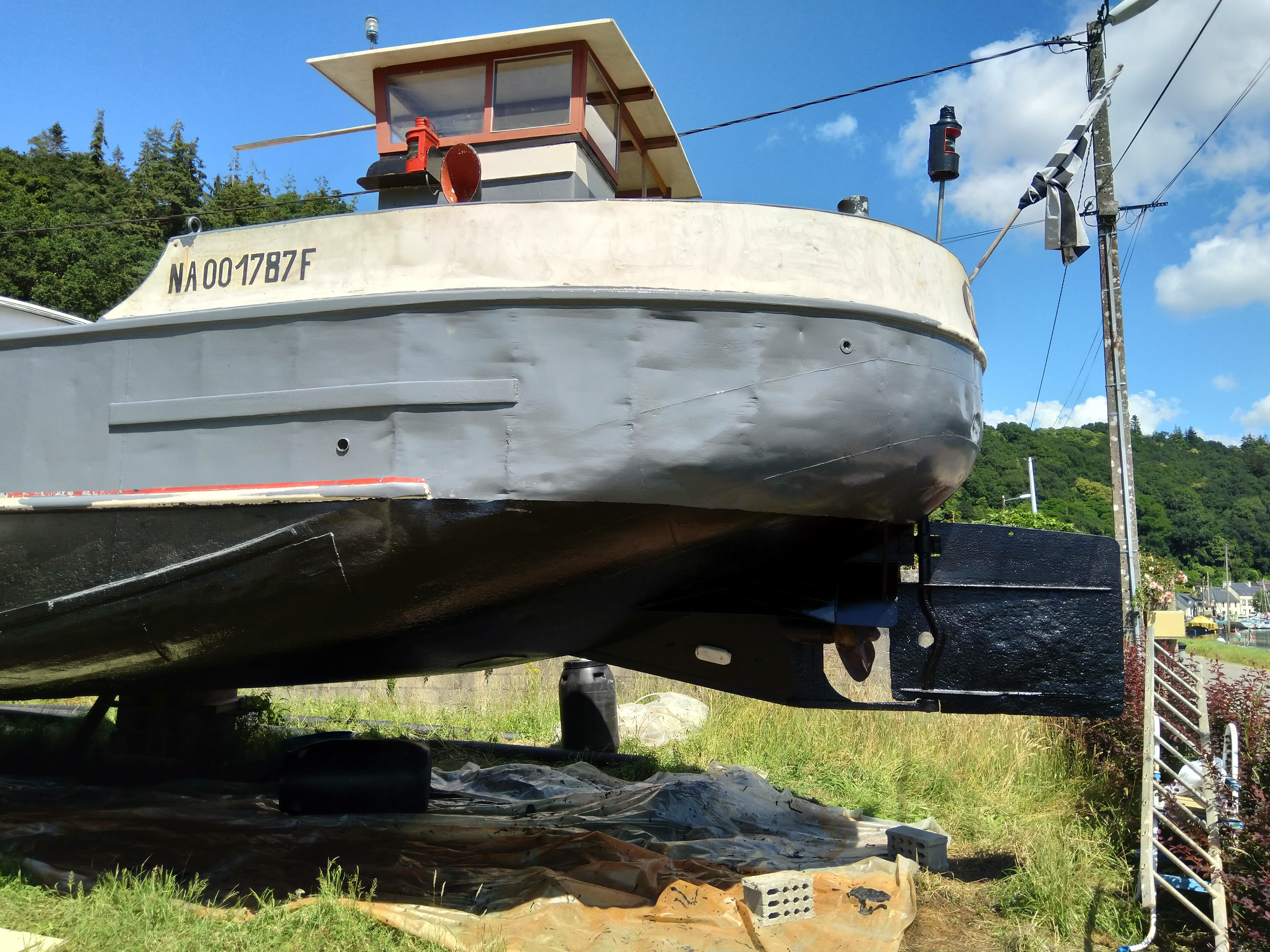 Péniche Patricia, Port-Launay, à sec, vue du gouvernailImmatriculation