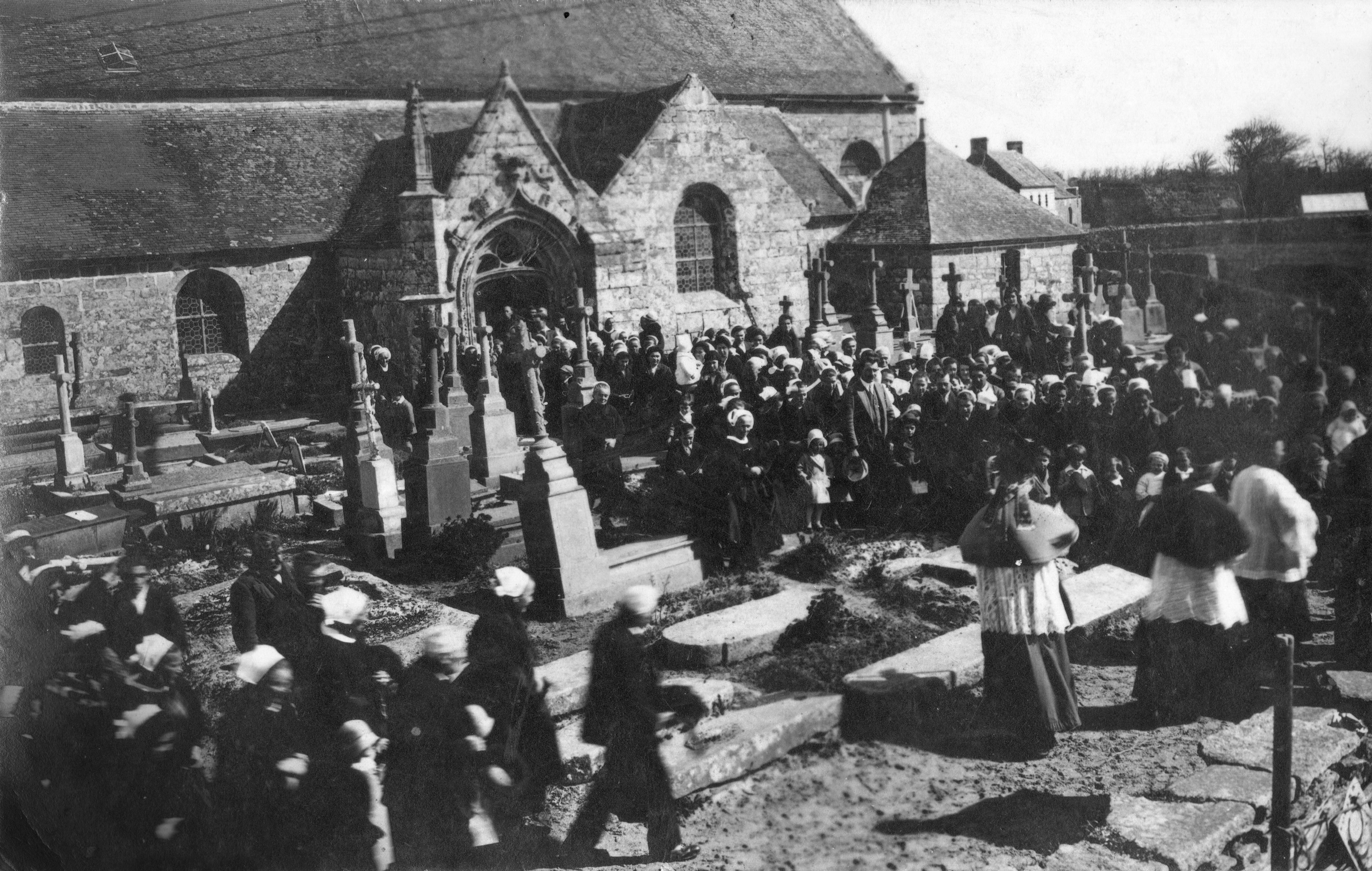 Reproduction - Début du 20e siècle, cimetière dans l'enclos de l'église. (Coll. particulière)Immatriculation