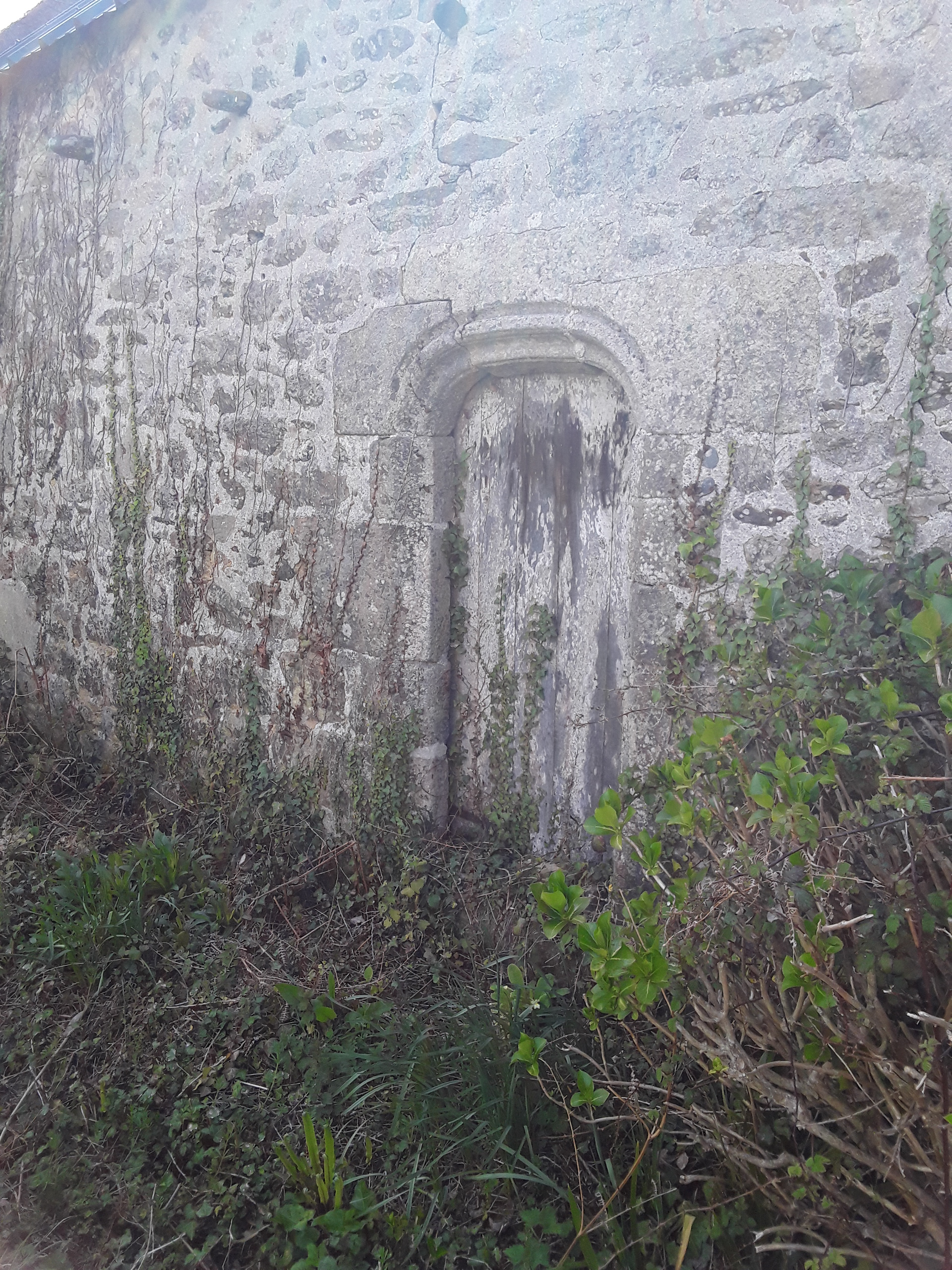 Ferme du bas, grange, façade est, porte en anse de panier et galets saillants. (2018)Immatriculation