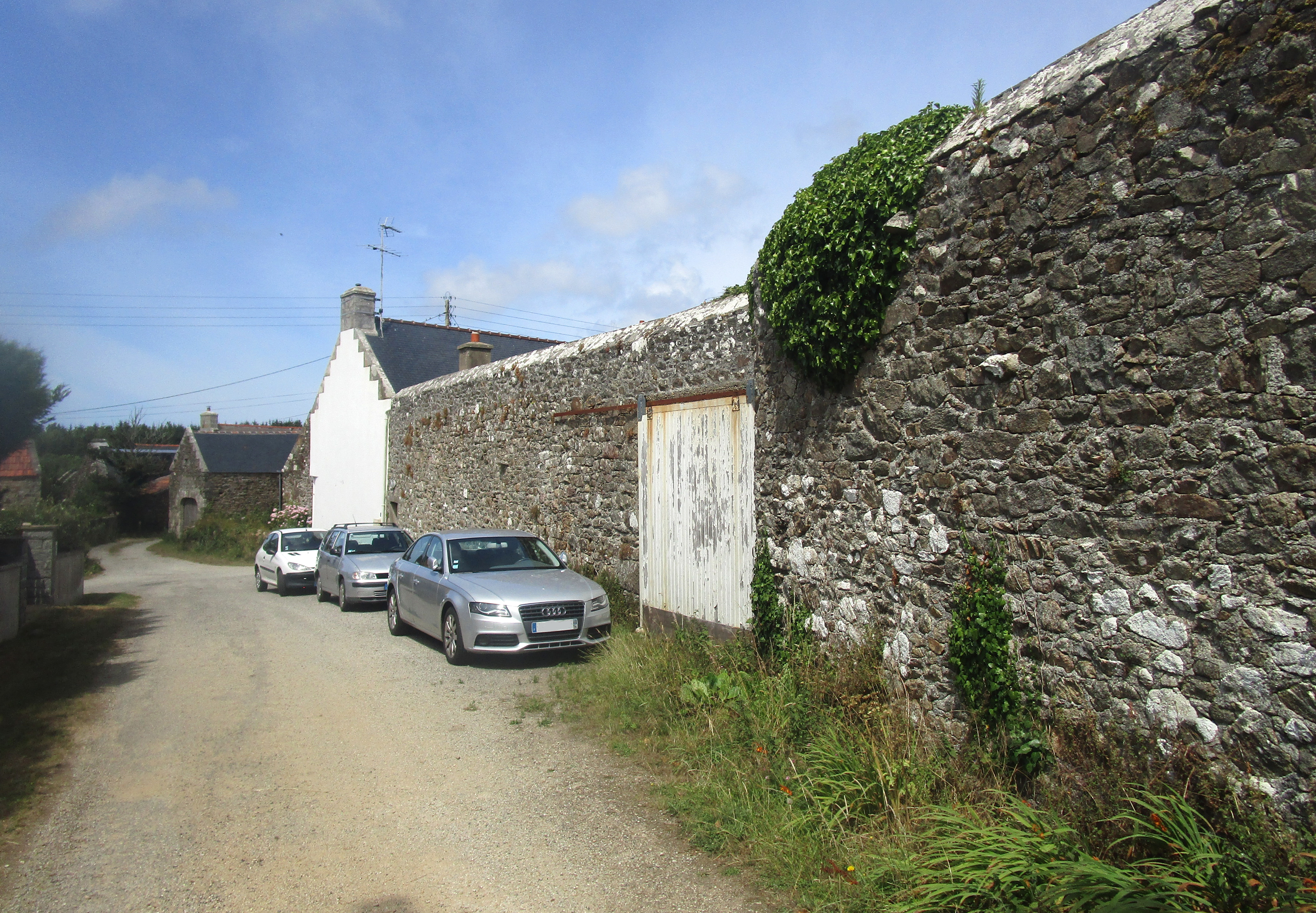 Haut mur qui clôt la cour de la ferme 6.Immatriculation