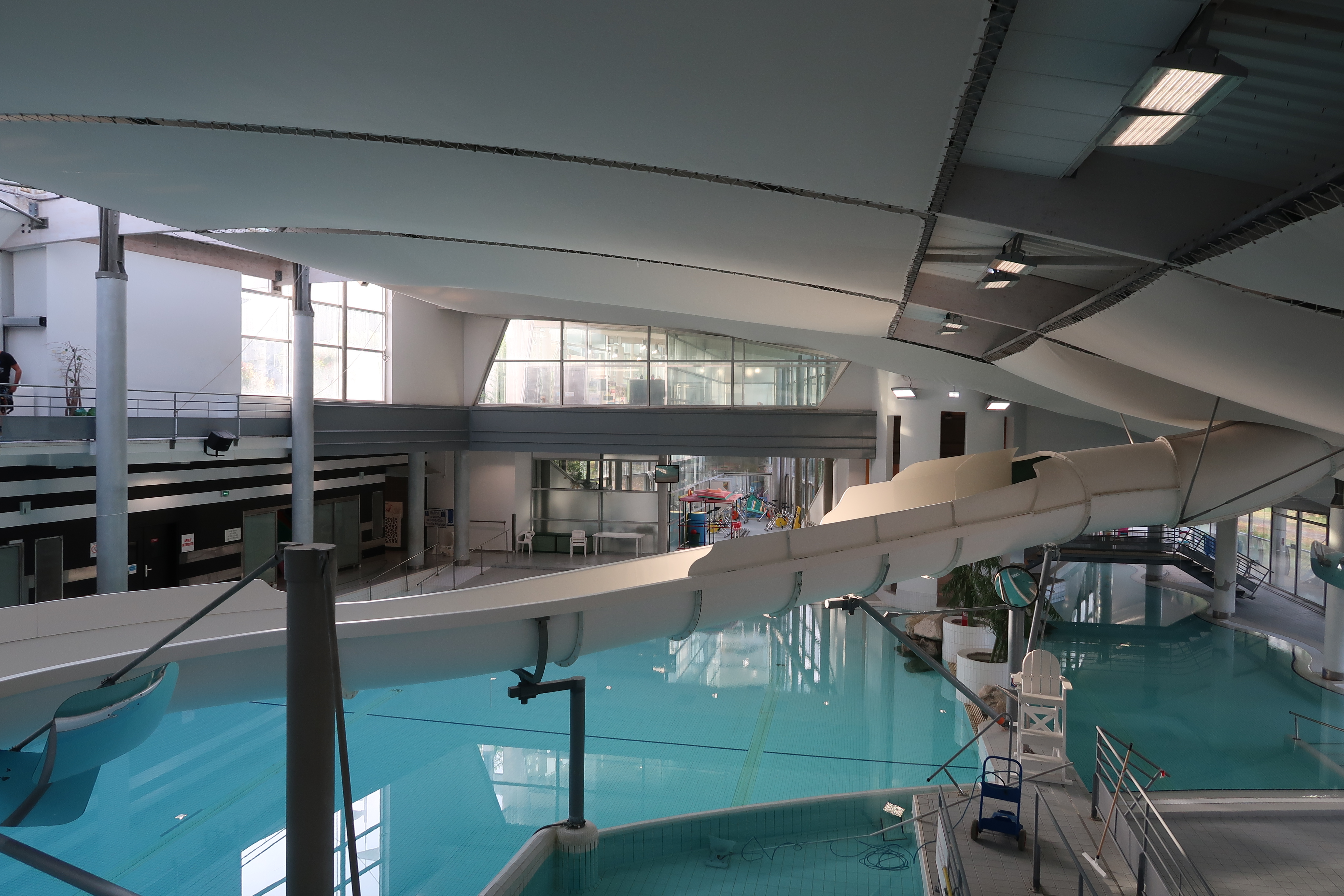 Bassin de loisirs vu vers le sud et tobogganImmatriculation