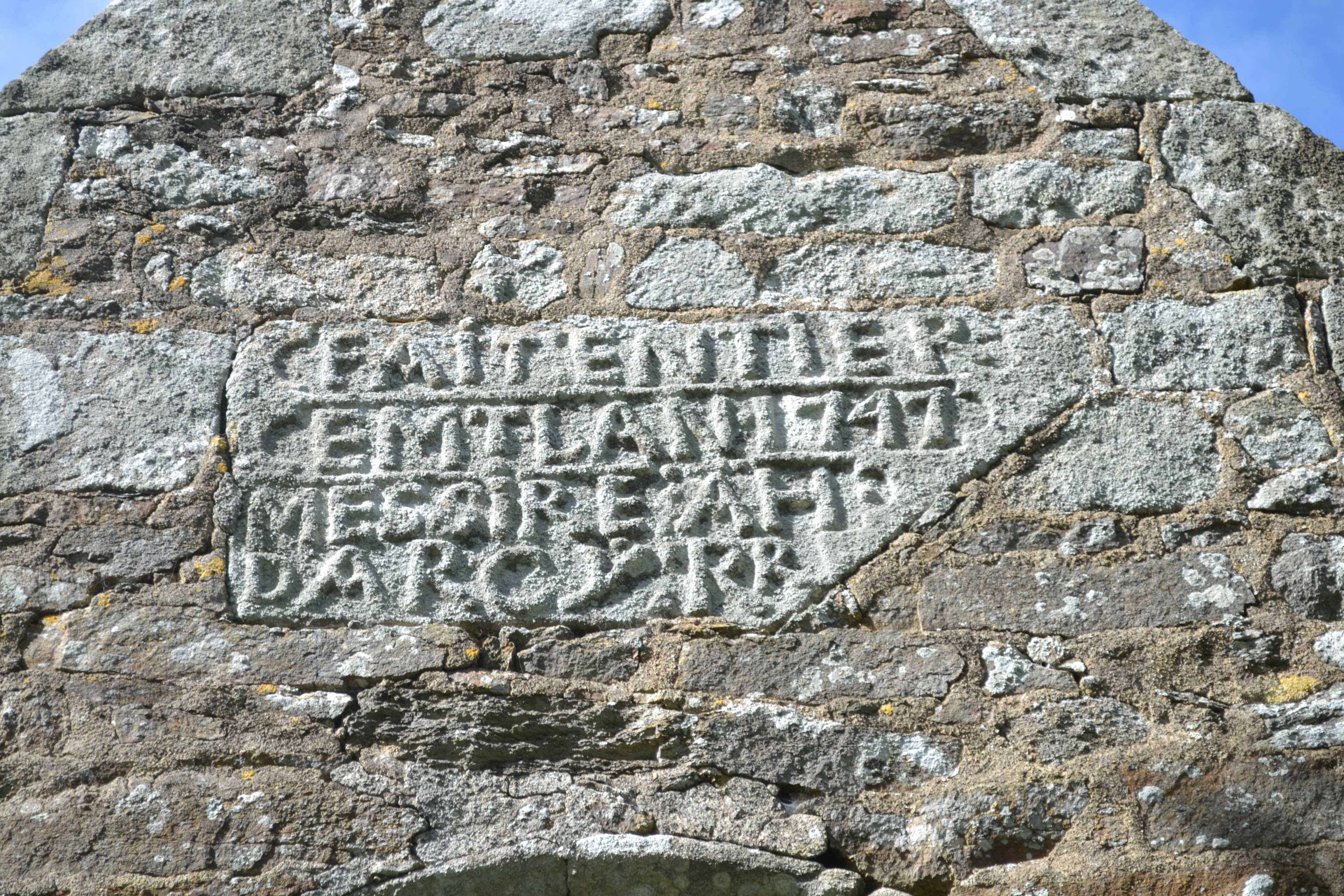 Aile sud, détail de l'inscription : FAIT : ENTIEREM (EN) T : L’AN 1747 MESSIRE : AH DARCY R (ECTEU) R. (2018)Immatriculation