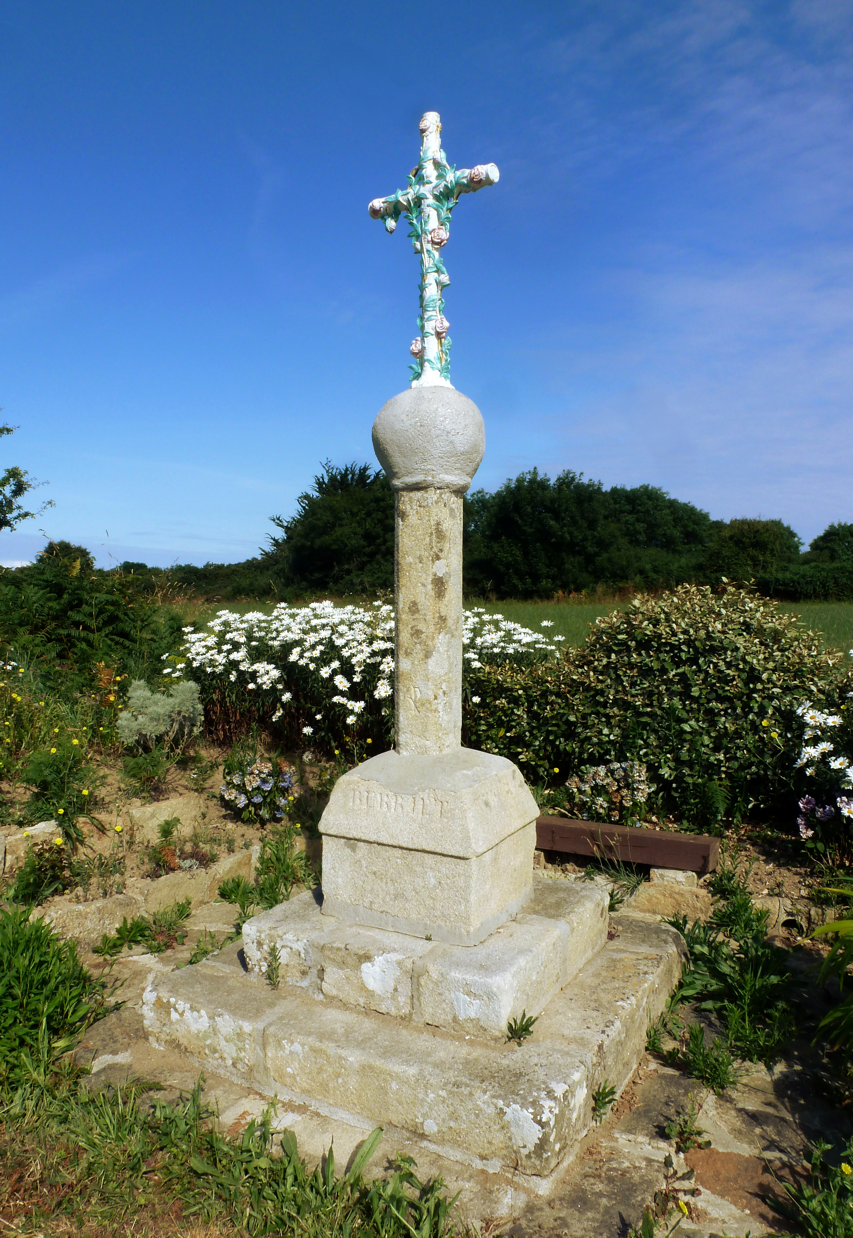 Croix dite "de Kerergon" ou "de Bellevue" datée 1885, vue prise du sud-est.Immatriculation