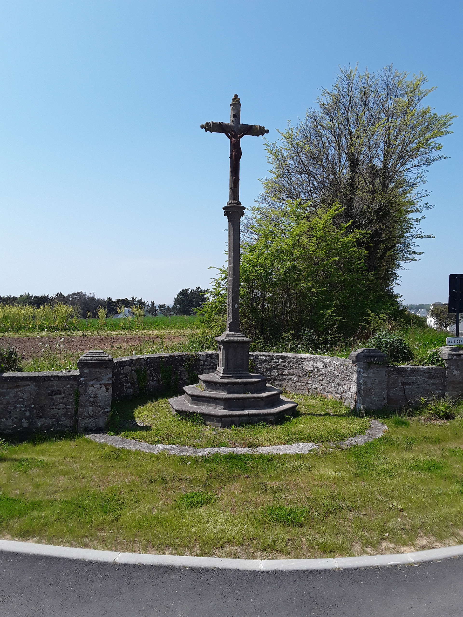 Croix de mission dite "de Pont Ar Val" ou "de Becherel" datée 1927, vue prise du nord-est.Immatriculation